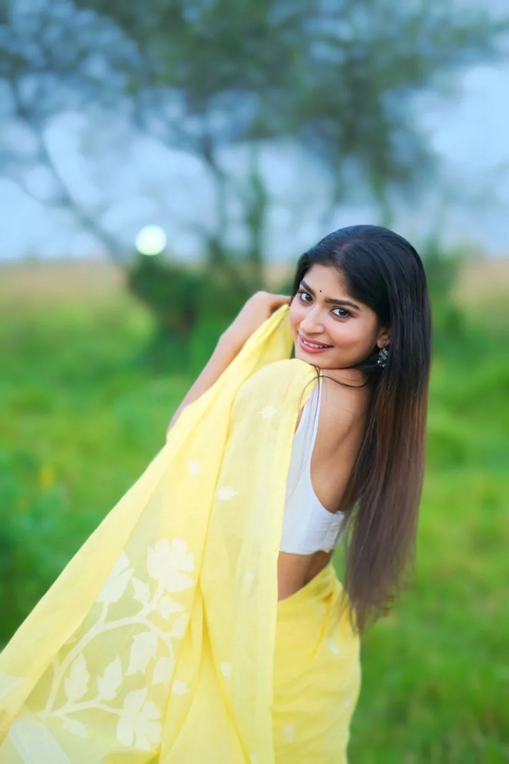Handloom Lemon Yellow Pure Cotton Jamdani Saree with White Motifs