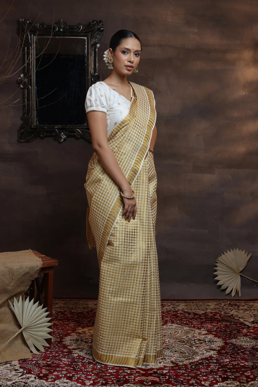 Step into timeless splendor with our Handloom Off White Pure Cotton Kasavu Saree. Adorned with all-over Gold Zari checks, it seamlessly blends elegance and opulence. Crafted with artistry, the cotton offers comfort while the shimmering checks add a regal touch. Versatile for traditional or modern occasions, it celebrates Indian heritage. Experience skilled weaving and the cultural richness in every thread. Make a statement of grace with this masterpiece. Shop now and embrace the allure of Handloom Off White Pure Cotton Kasavu Saree with all-over Gold Zari checks - a true reflection of splendor!