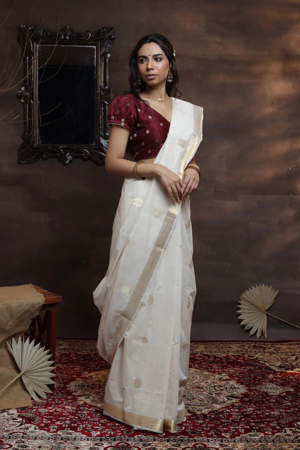 Discover the allure of our Handloom Off White Pure Cotton Kasavu Saree. Adorned with Gold Zari borders & motifs, this masterpiece weaves tradition and modernity. Embrace Indian heritage and elegance, enveloped in comfort and opulence. Perfect for any occasion, it's a timeless addition to your wardrobe. Elevate your style with this regal symbol of beauty and grace, showcasing the artistry of skilled artisans. Experience the richness of cultural heritage with every drape. Shop now and celebrate the ethereal charm of Handloom Off White Pure Cotton Kasavu Saree.