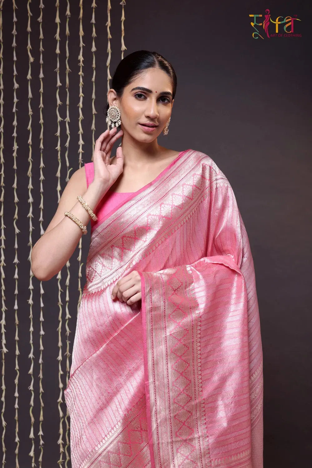 Elevate celebrations with our Handloom Pink Pure Silk Brocade Banarasi Saree, a fusion of tradition and modern allure. Meticulously handwoven, its opulent pink hue and intricate brocade work radiate elegance, perfect for weddings and festivities. Crafted from fine silk, it drapes regally, embodying the heritage of Banarasi weaving. Perfect for wedding and festive occasions, this saree encapsulates timeless charm and style, ensuring you make a resplendent statement on any special occasion.