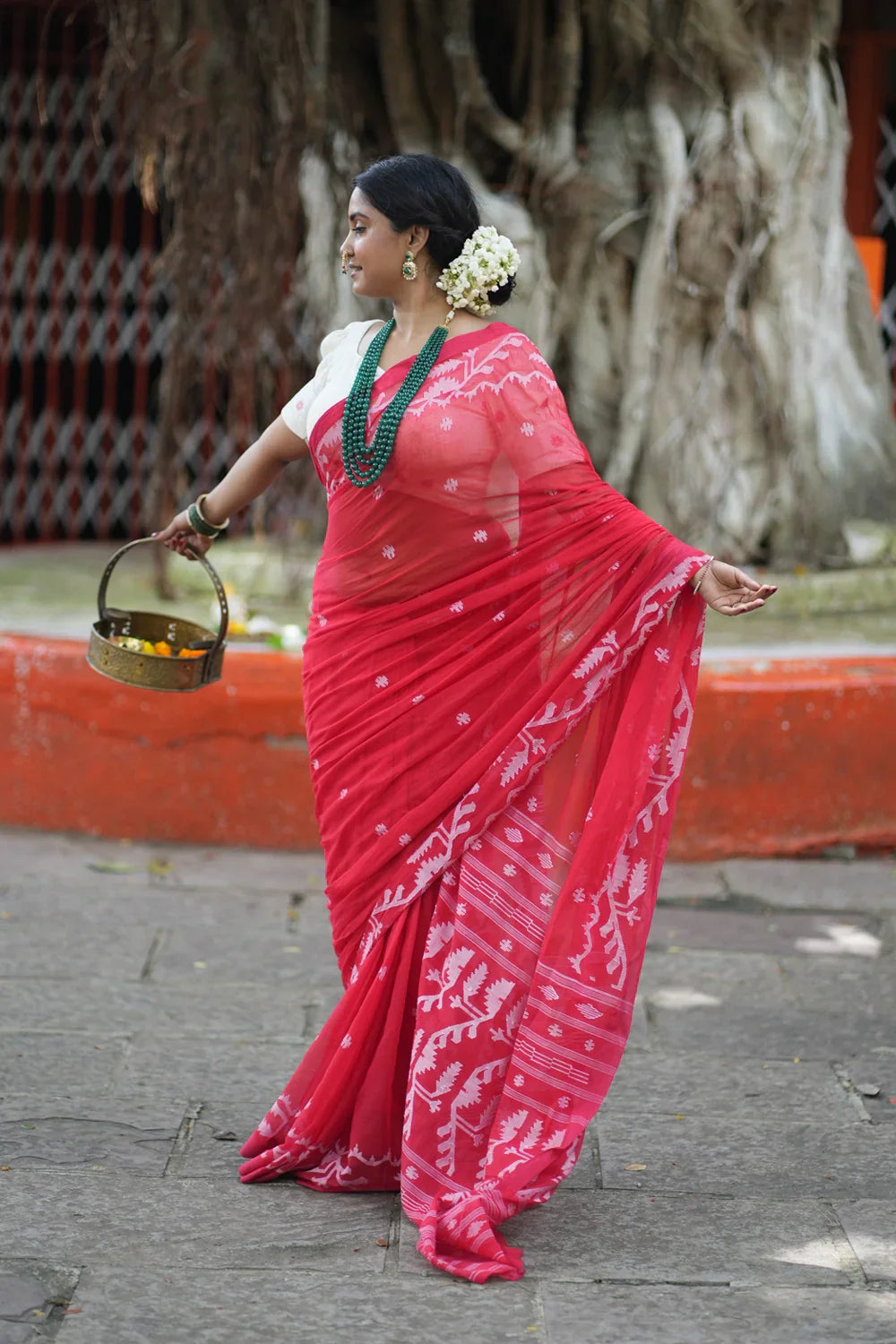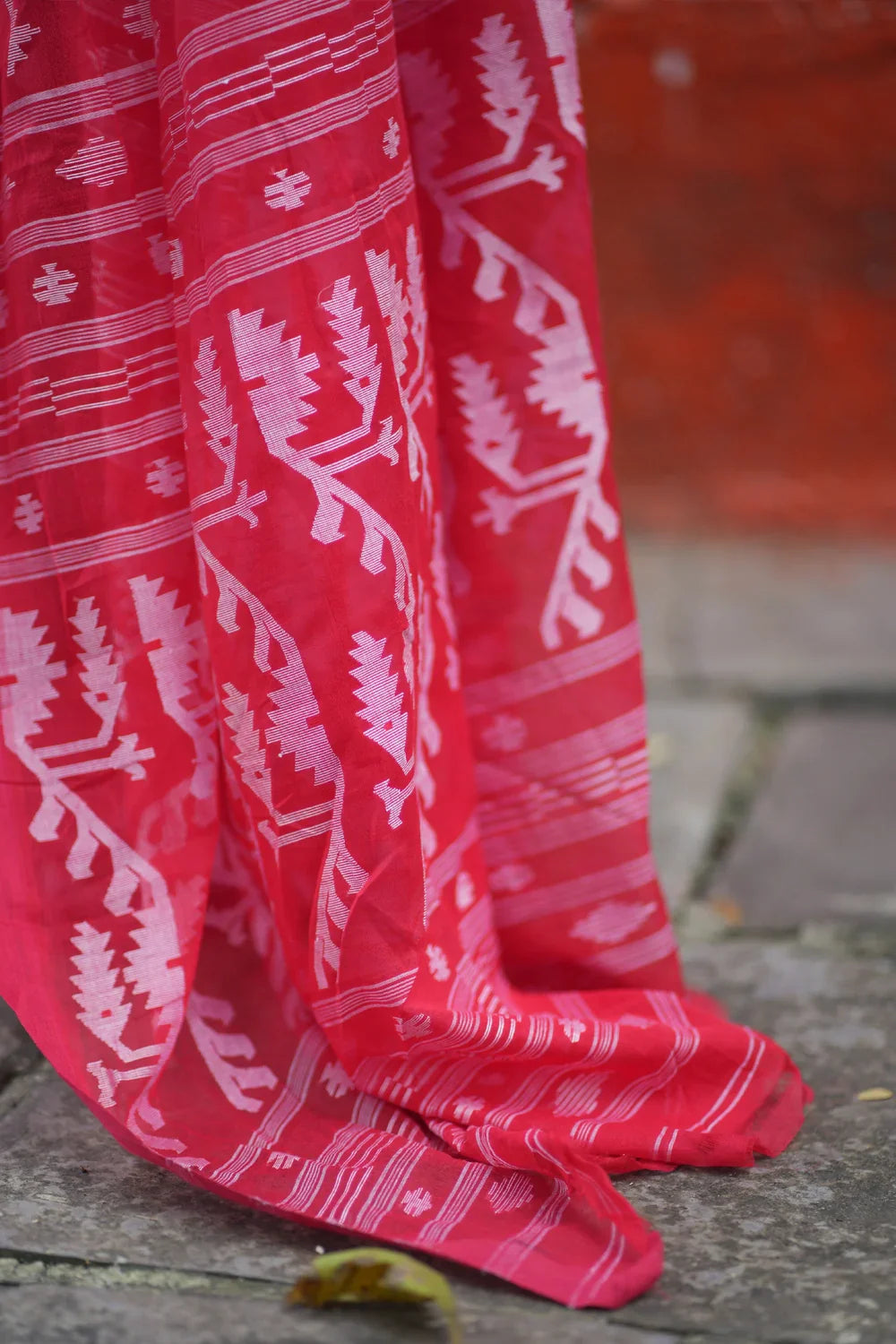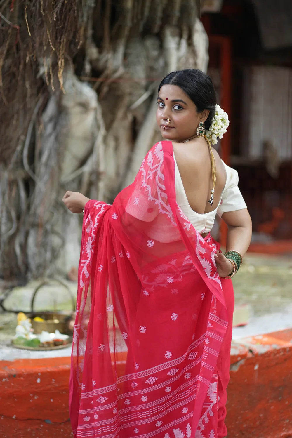 Handloom Red Pujo Jamdani Saree