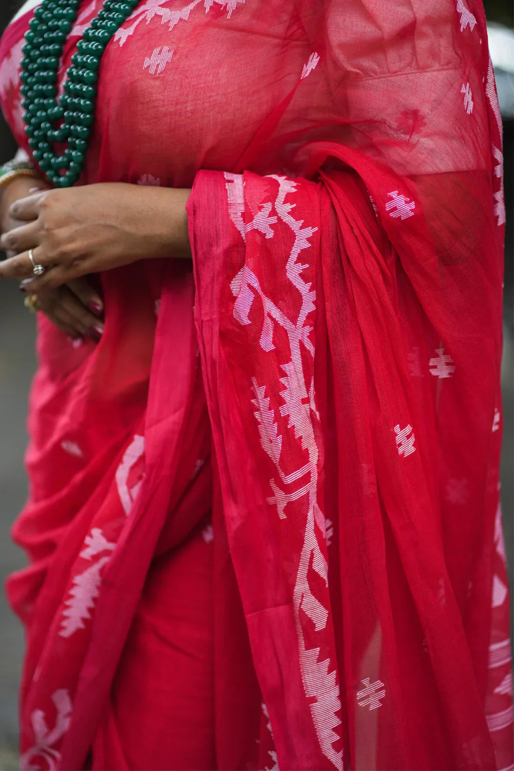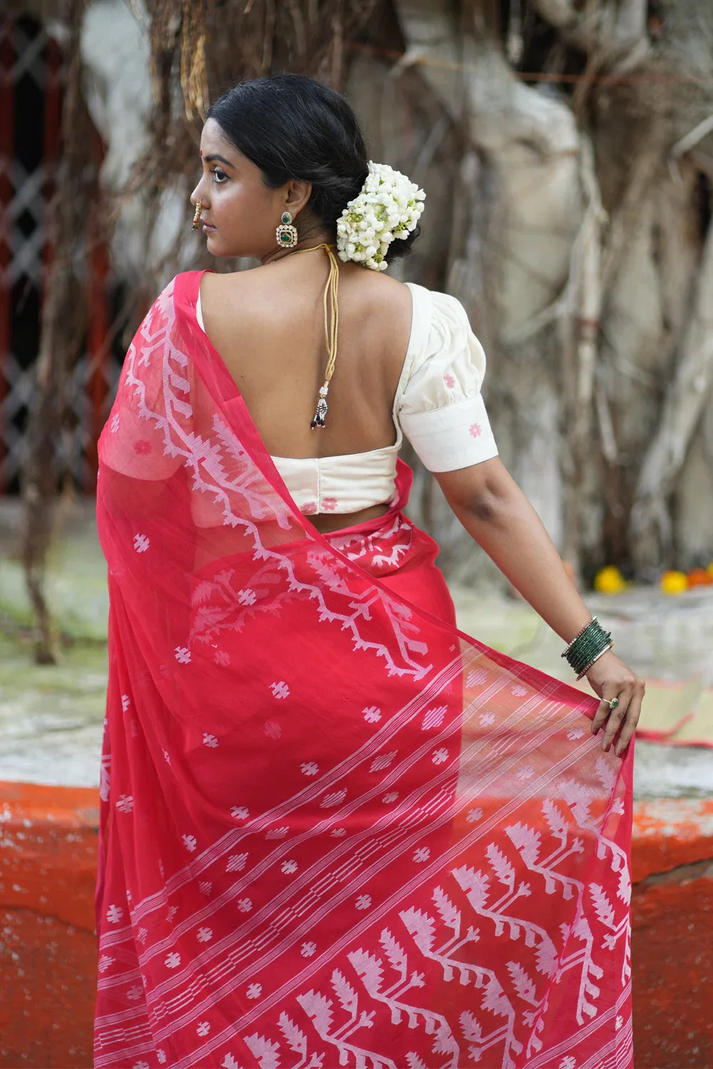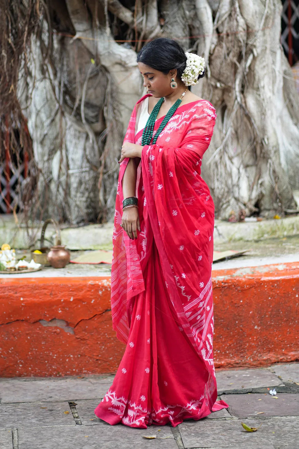 Handloom Red Pujo Jamdani Saree