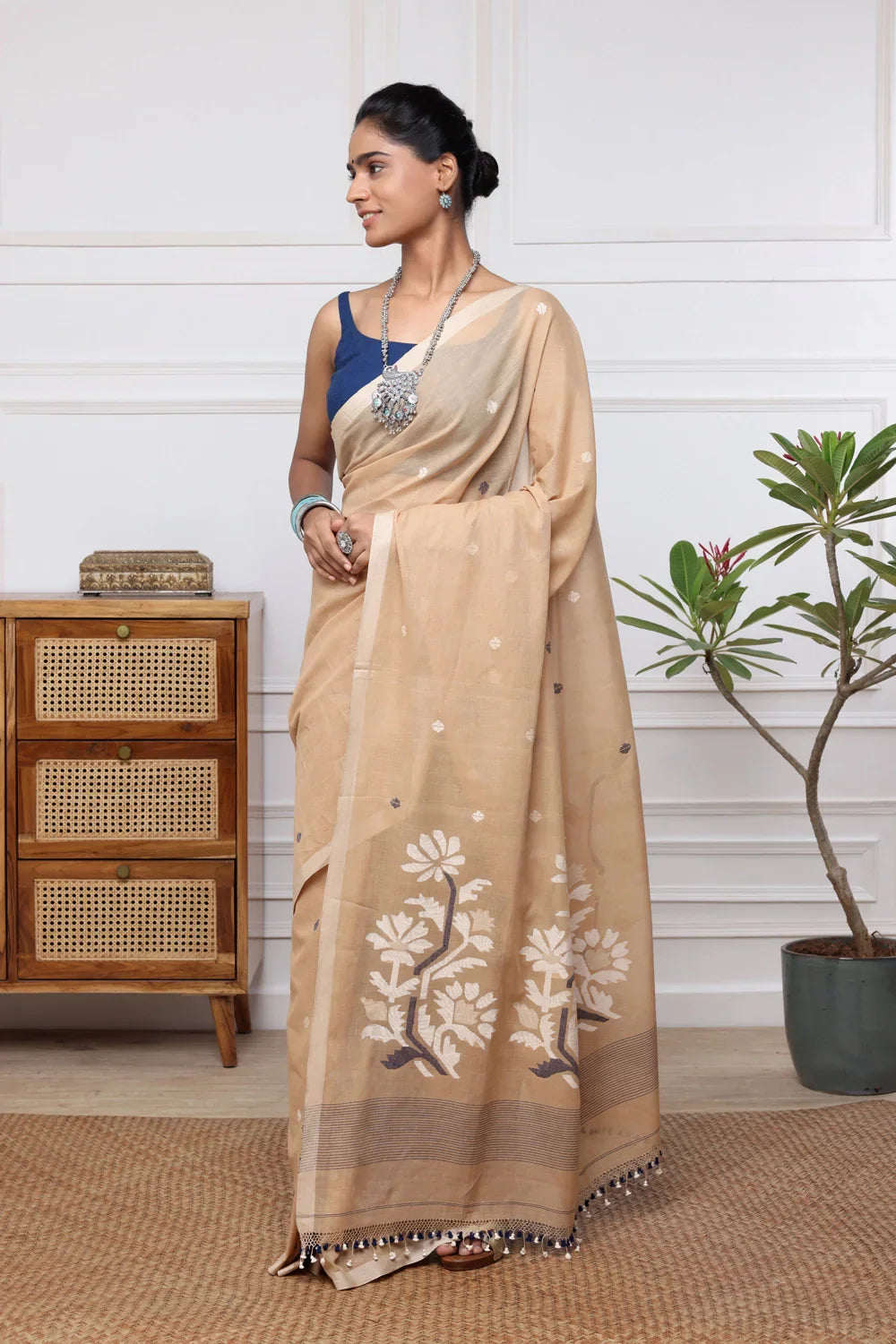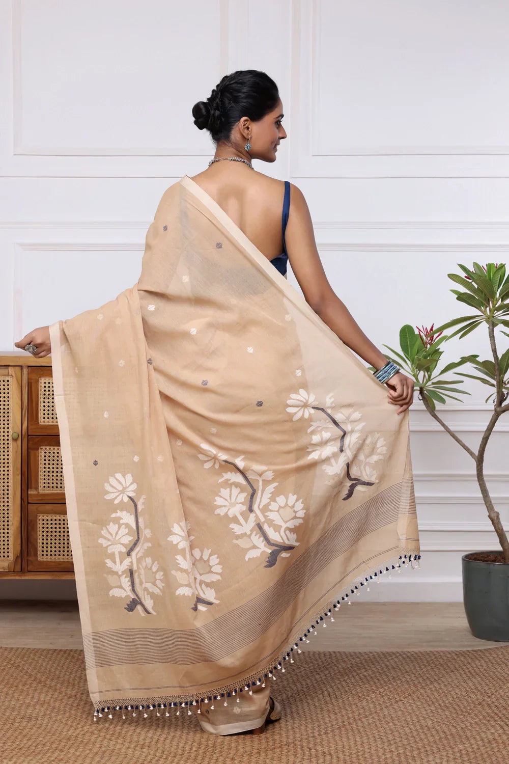 Handloom Sand Brown Soft Cotton Jamdani Saree