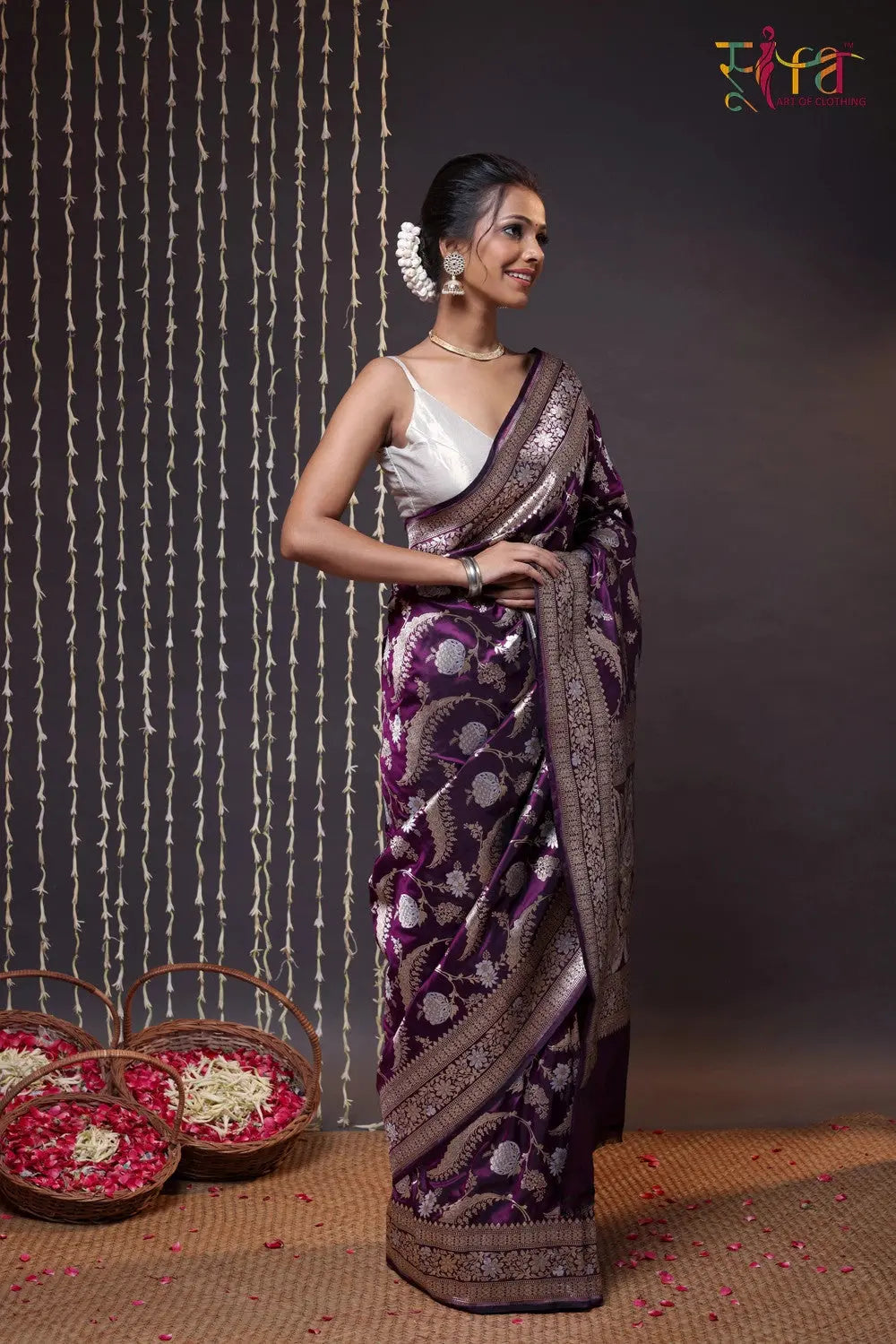 Handloom Voilet Pure Silk Banarasi Jangla Saree