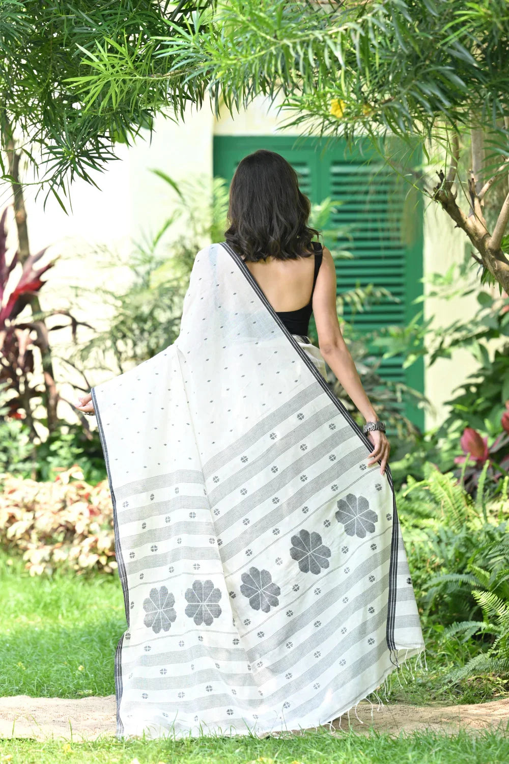 Handloom White & Black Soft Cotton Jamdani Saree