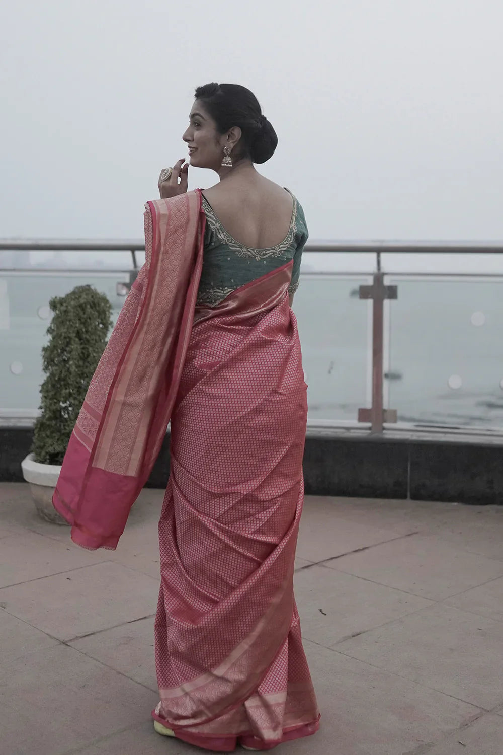 Hot Pink Handloom Pure Silk Brocade Banarasi Saree