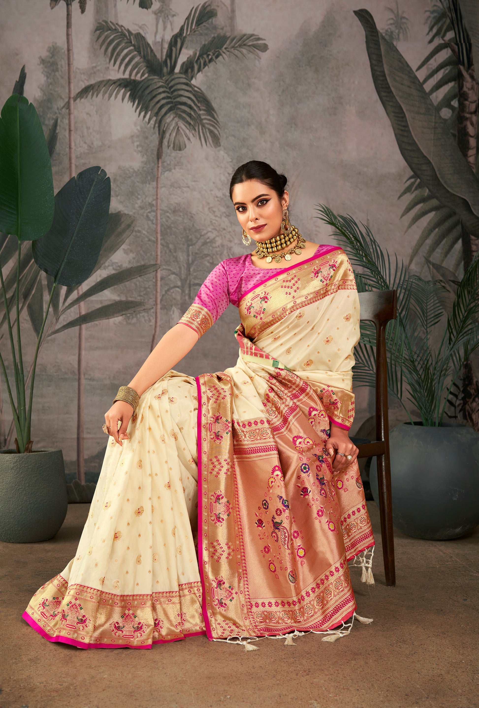 Isha White Paithani Silk Zari woven Saree