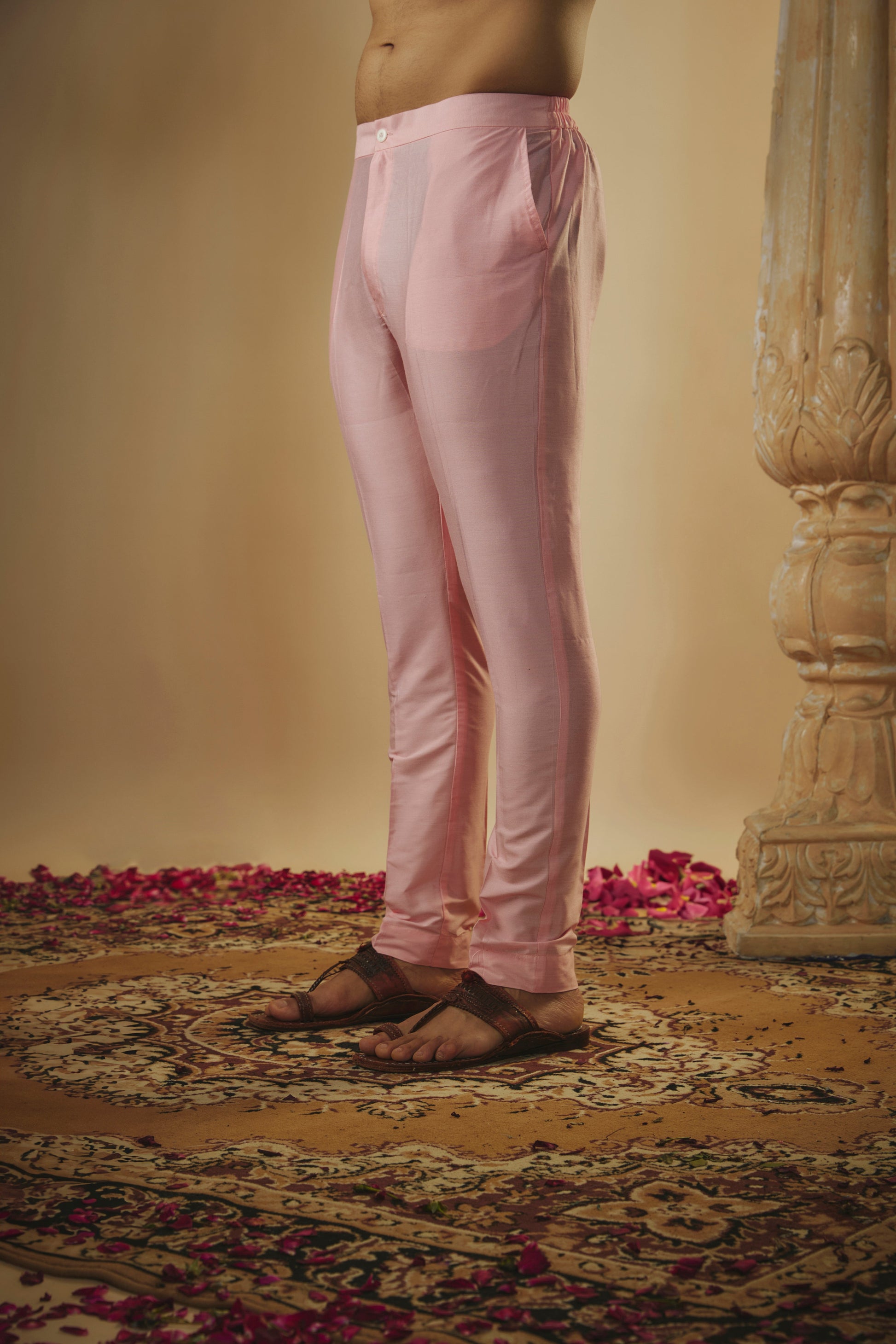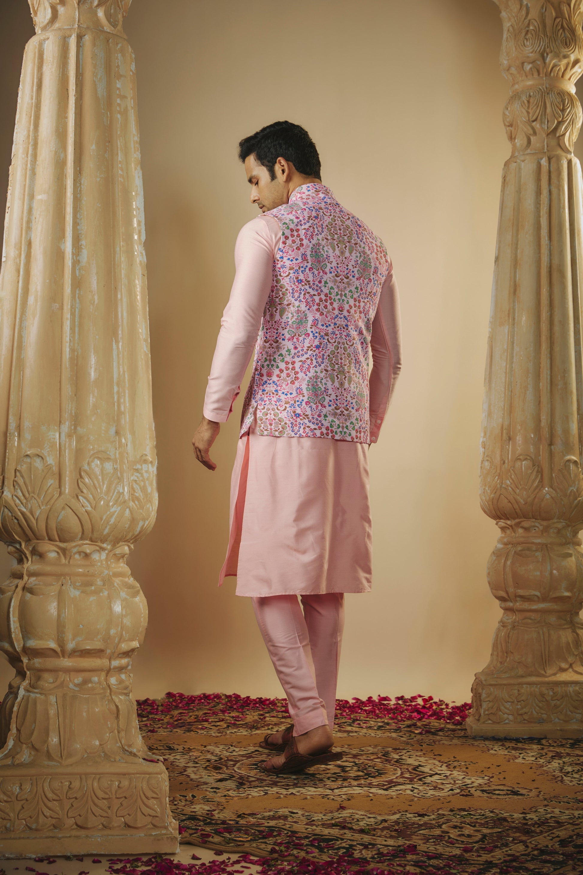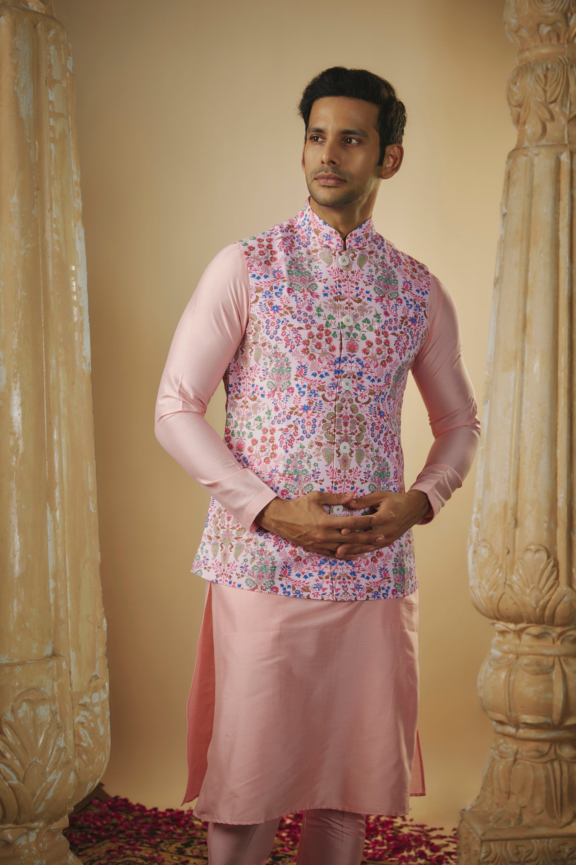 Ivory pink kurta pajama in splendid silk fabric with digital print jacket.