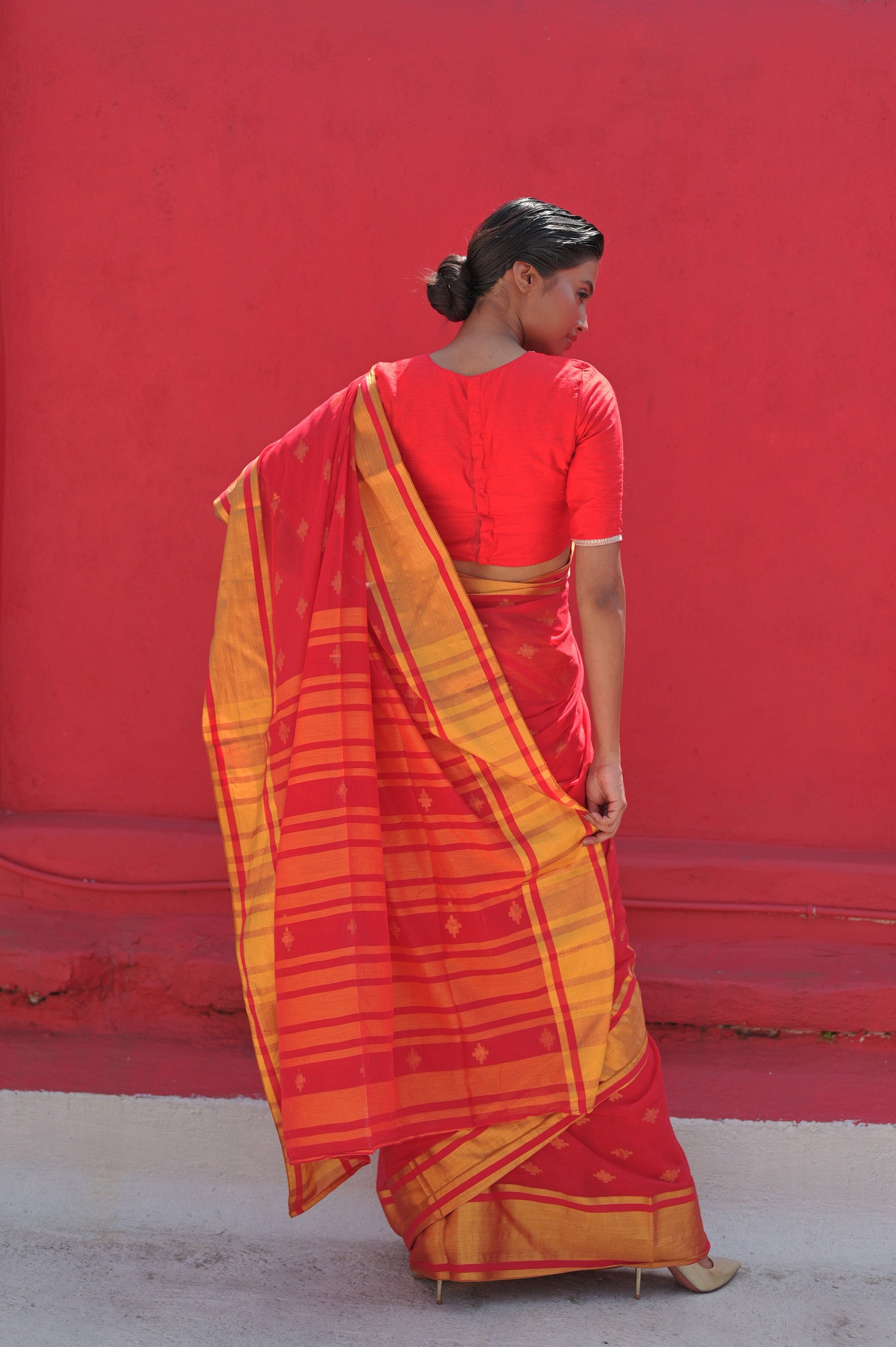 kanta I Red Handloom Cotton Saree with Jamdani Motifs