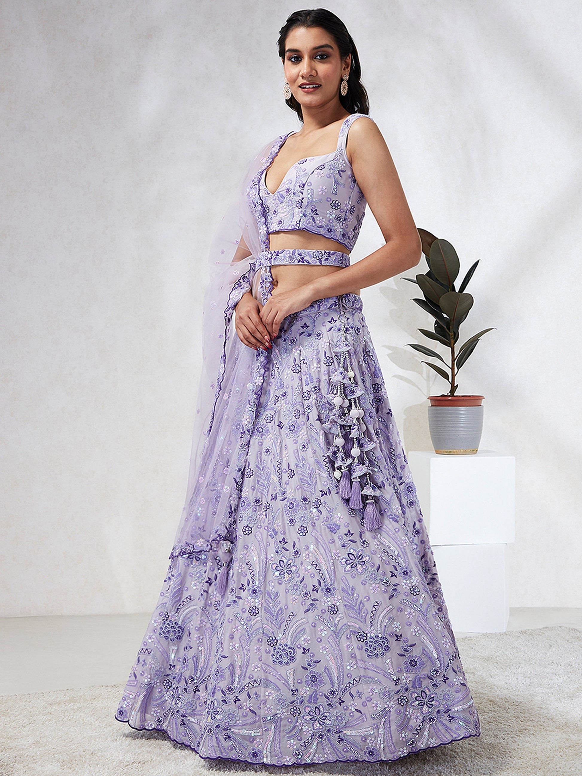 Lavender Georgette Sequins and thread embroidery Lehenga
