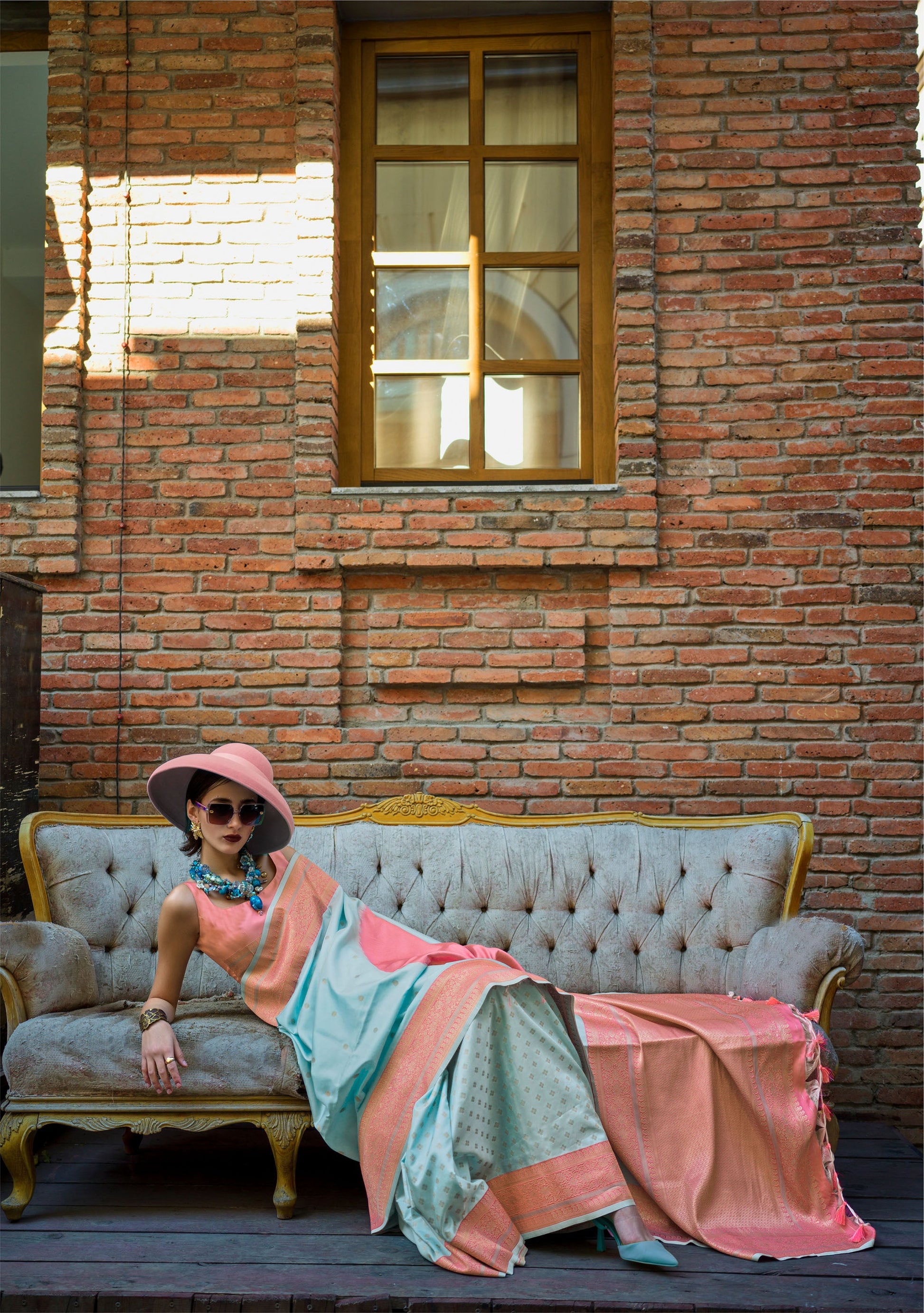 Light Blue Peach Koche Soft Silk Handloom Saree