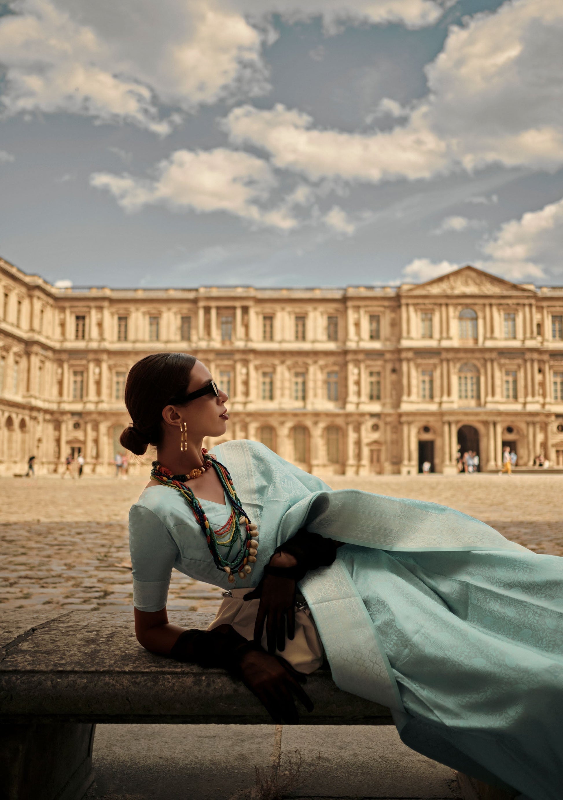 Light Green Kavinci Silk Pure Satin Handloom saree