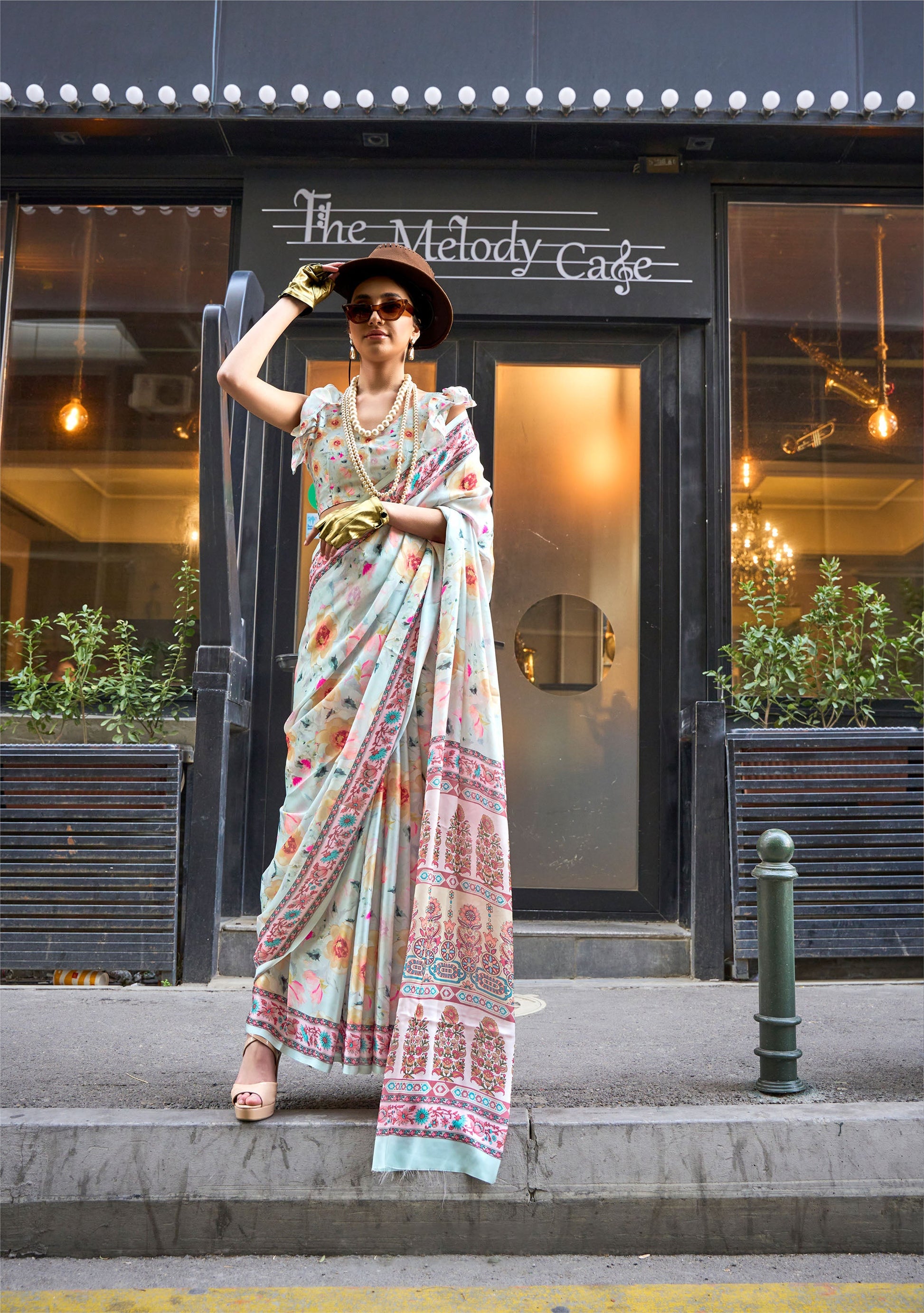 Does your wardrobe need more versatility? Then, check out this. Let your skin feel the refreshing touch as you adorn this superior-quality lightweight Saree to match the overall modest design.