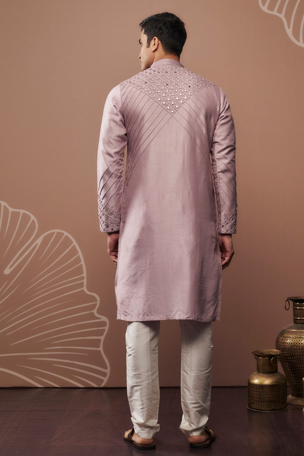 Light purple silk kurta and pajama with hand and machine work