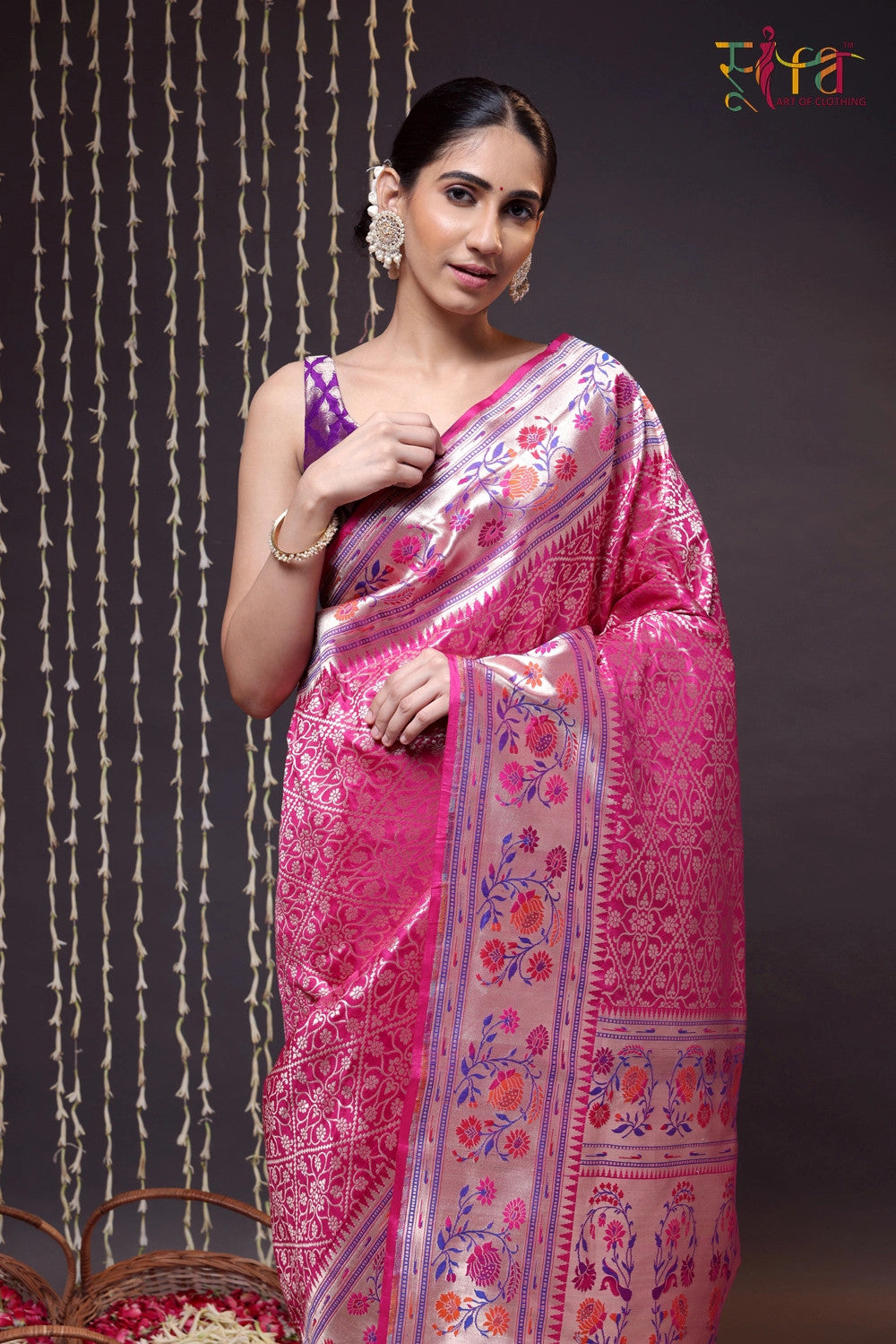 Magenta Handloom Pure Silk Banarasi Paithani Saree