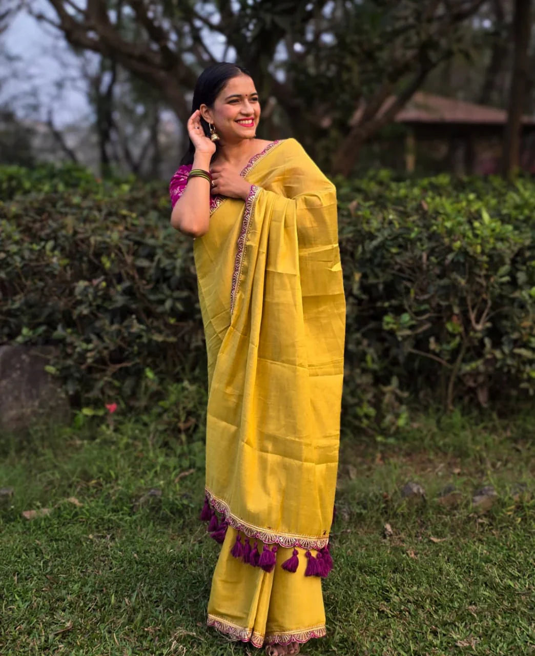 Blouse Piece: Yes, saree comes with a wine blouse fabric