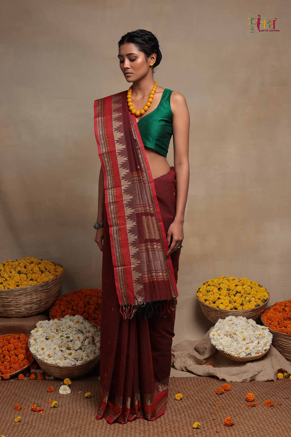 Presenting our new delightful maroon handloom pure cotton Kanchi saree adorned with an exquisite Temple Border in striking beige. Meticulously crafted with precision and an eye for detail, this saree embodies a perfect blend of elegance and sophistication.Drawing inspiration from the intricate motifs found in ancient temples, the intricate Temple Border in beige adds a touch of traditional allure, symbolizing the rich heritage of Indian craftsmanship. Every detail is thoughtfully woven, adding a touch of artistic splendor to this saree.Versatility meets beauty as this saree effortlessly blends tradition with contemporary sensibilities.