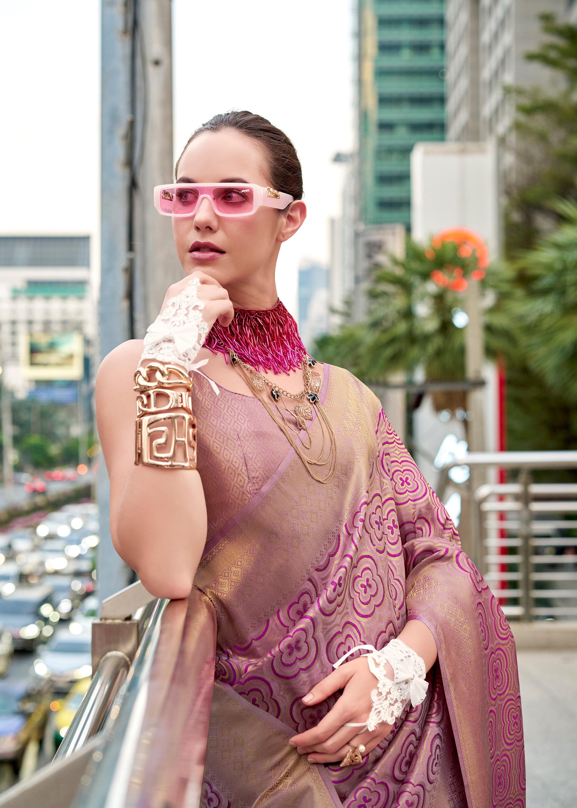 Mauve Butterscotch Handloom Kanchivaram Buttery Silk Saree