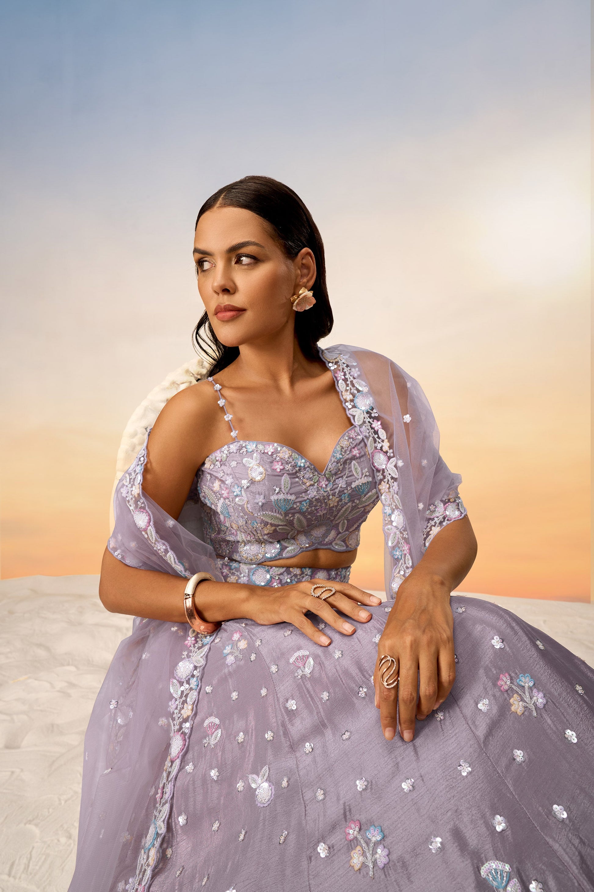 Mauve Chiffon Sequins and thread embroidery Lehenga Choli