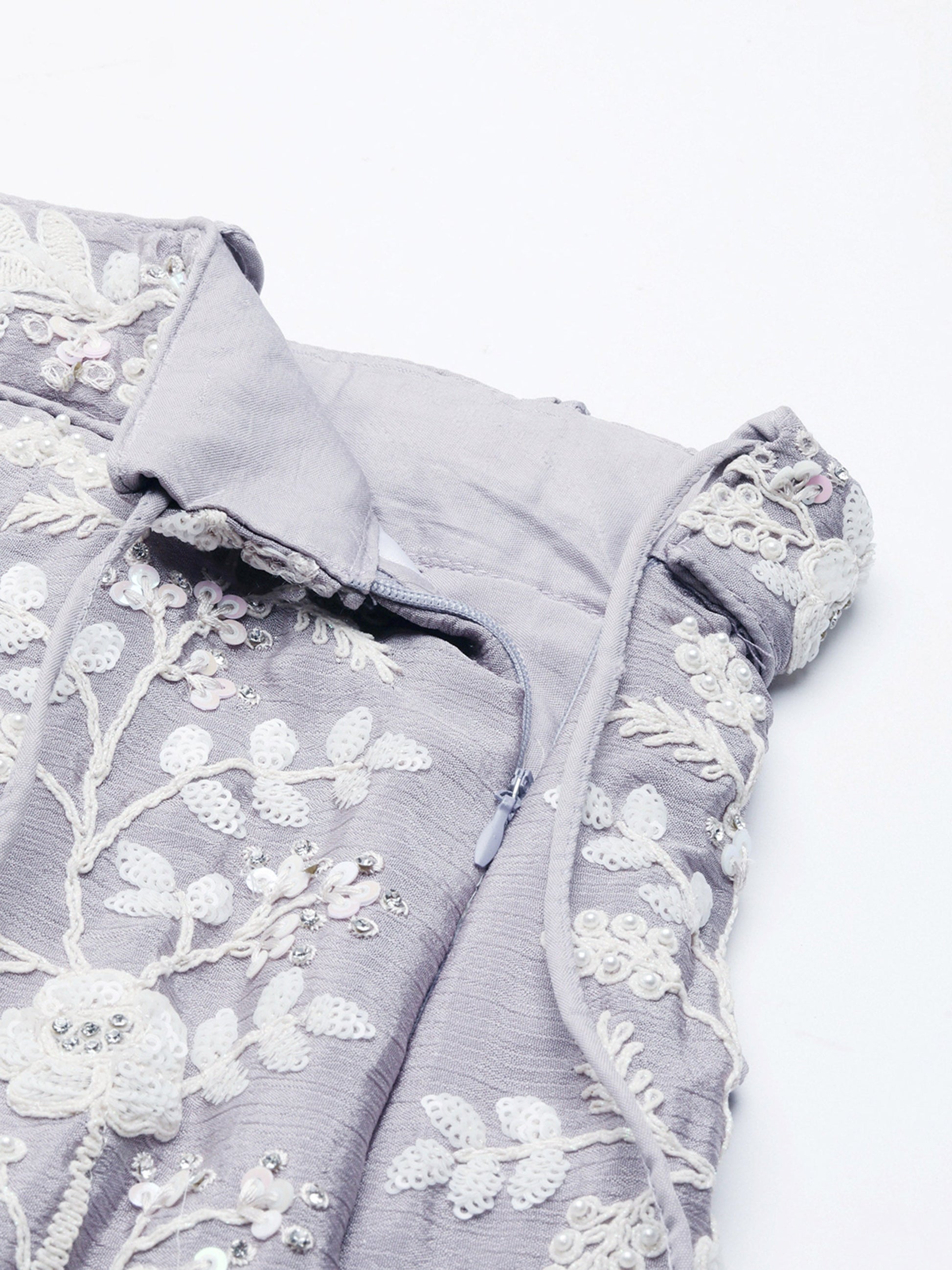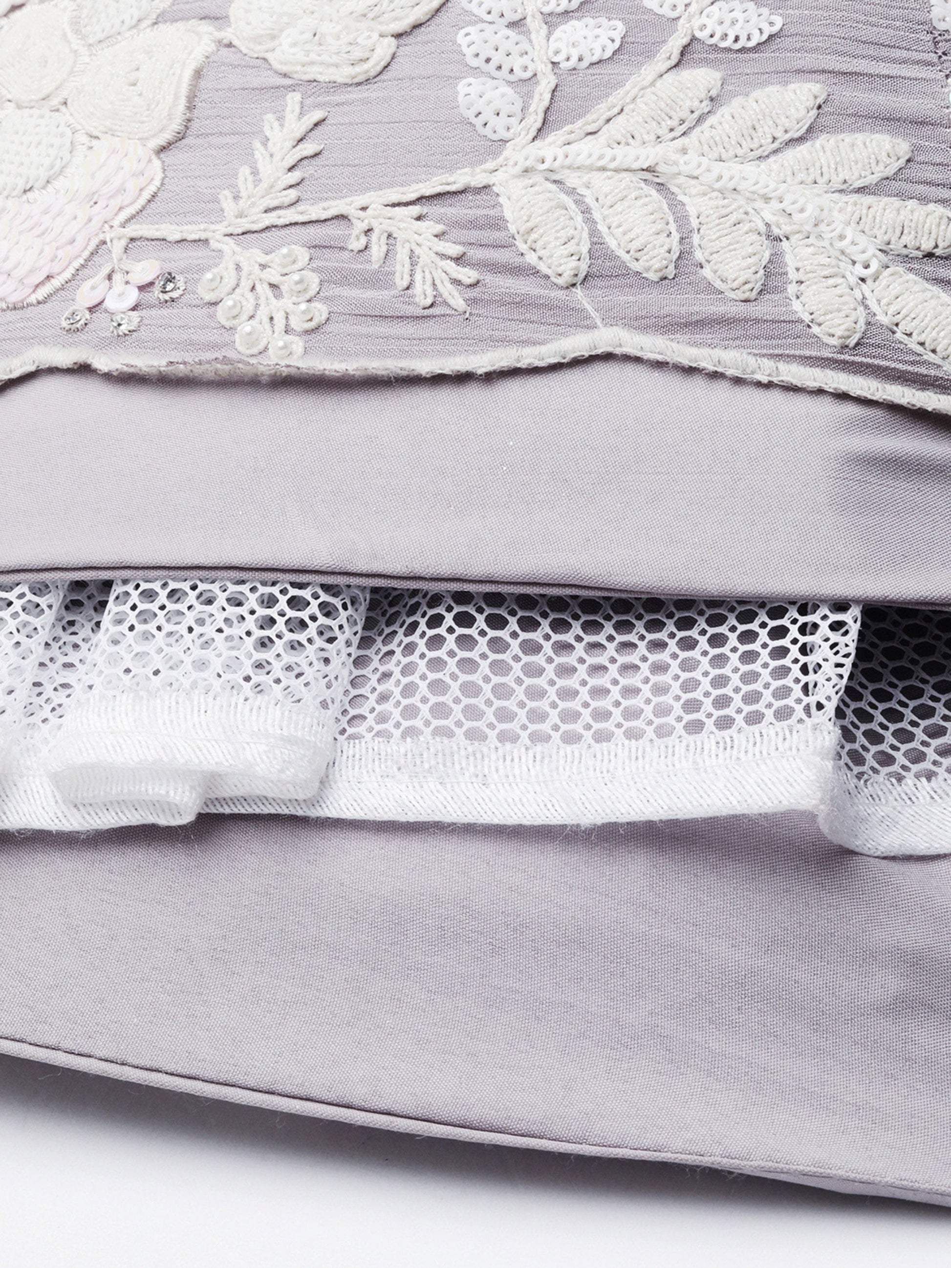 • Dupatta:- Mauve Net Dupatta has a Sequins work Ethnic motif with Embroidery cut work Border.