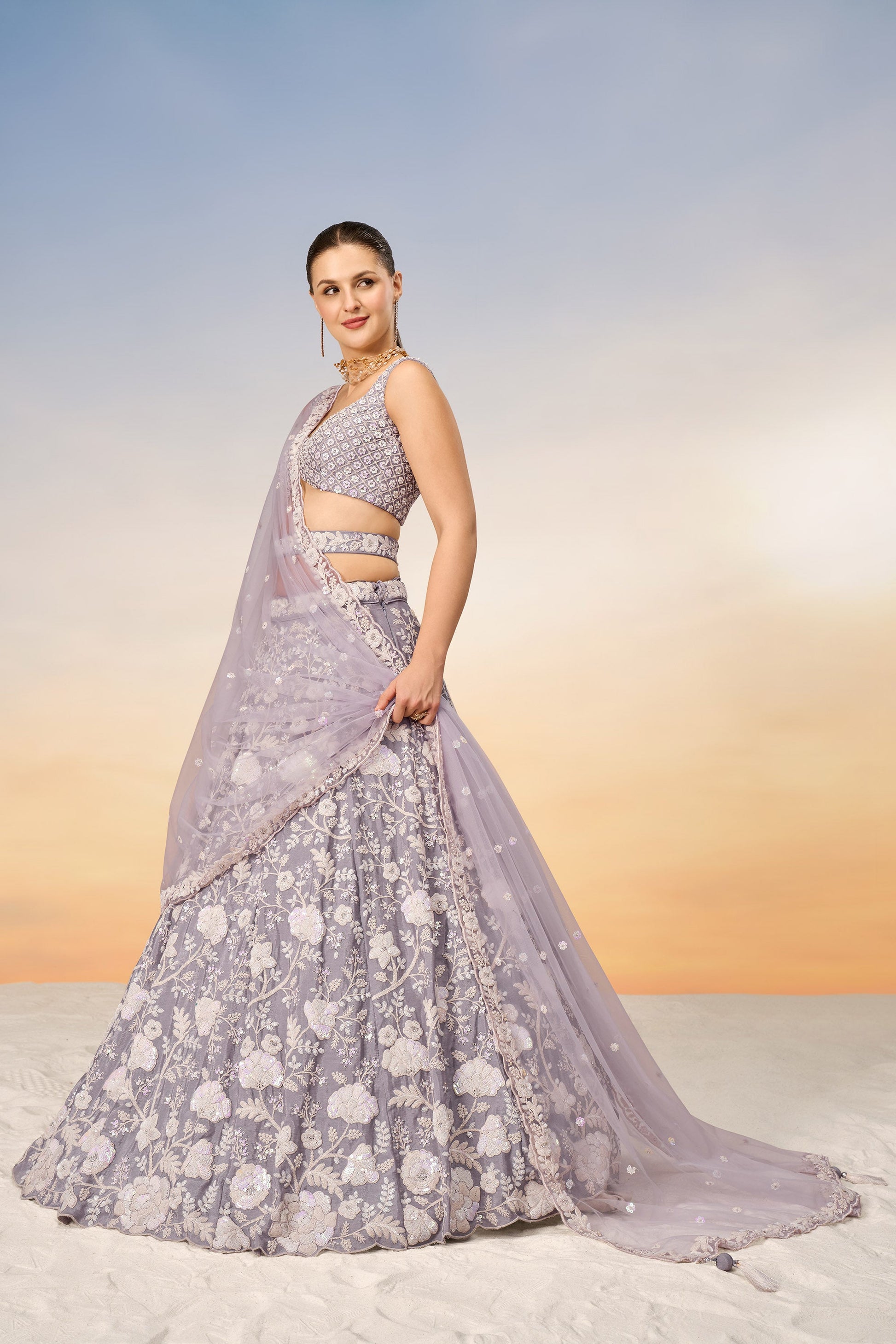 Mauve Chinon Sequins and Zarkan embroidery Lehenga