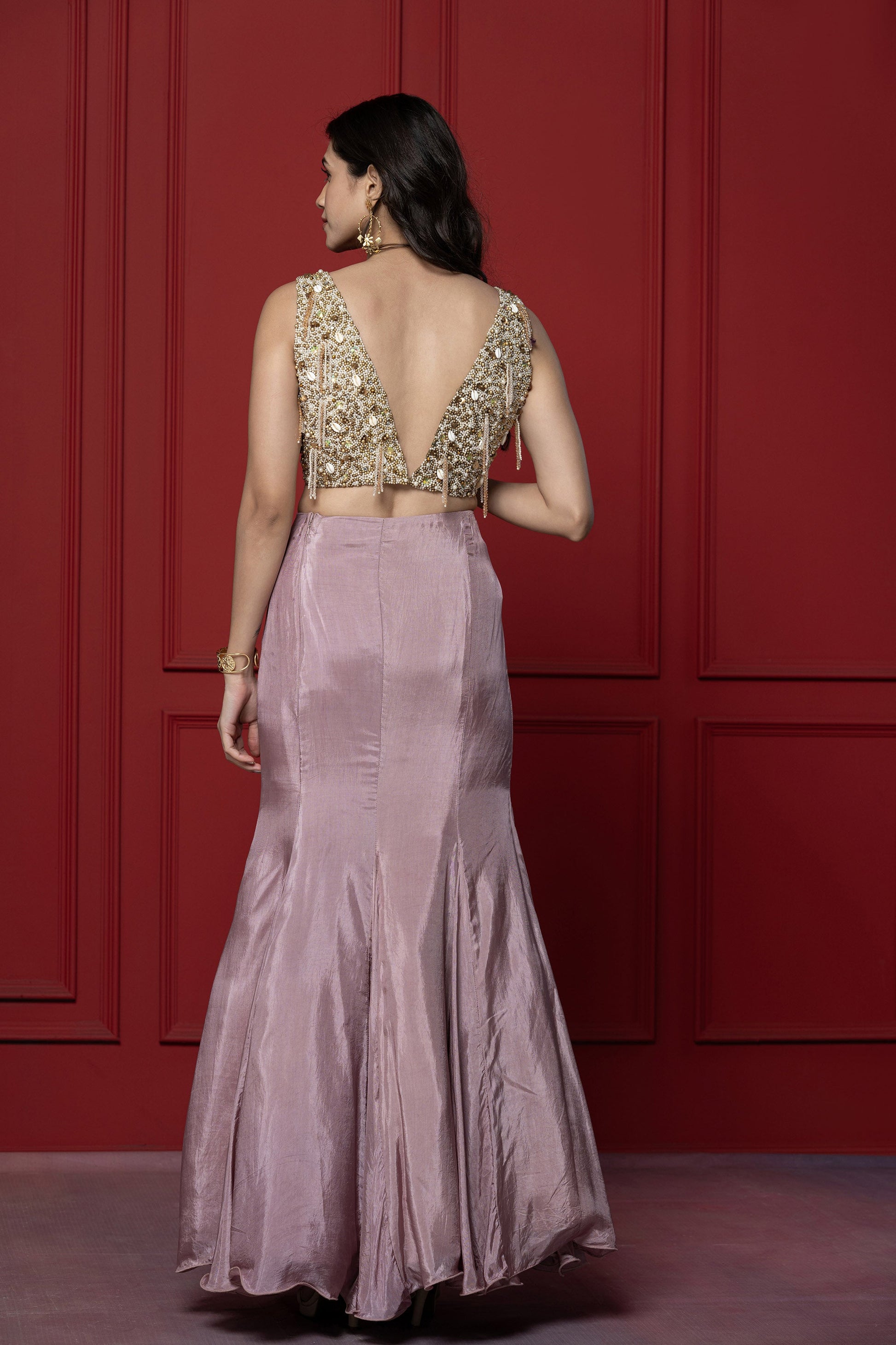 Mauve Fish Cut Upada Skirt Set