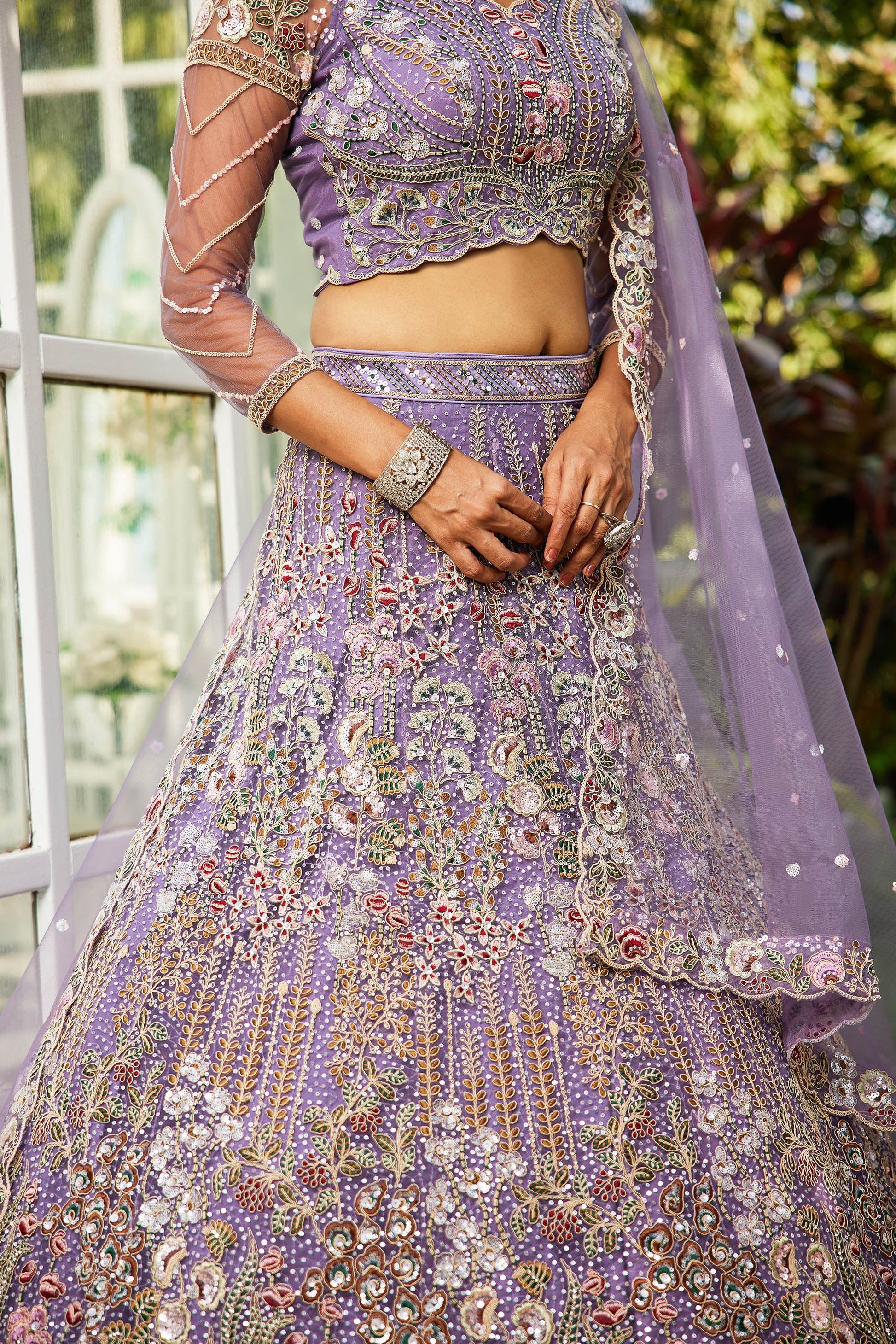 Mauve net and Coding & Zarkan embroidery Lehenga choli & Dupatta
