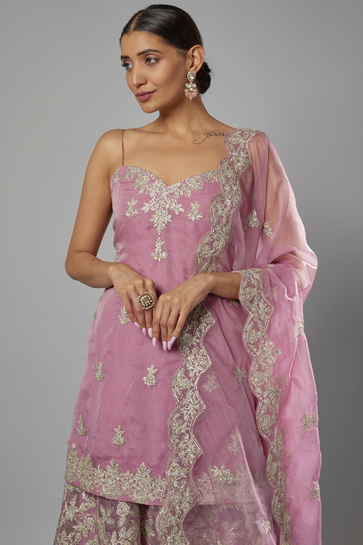 mauve organza embroidered sharara set