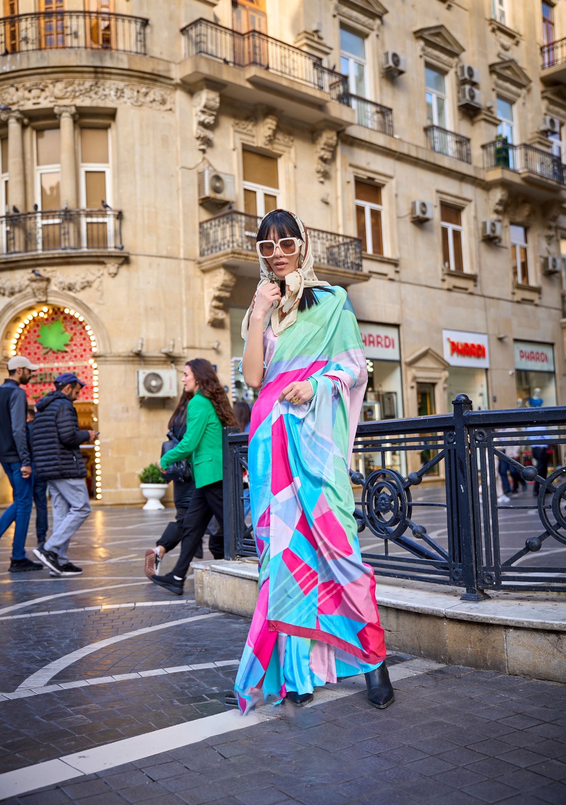 Mint Green Abstract Krayon Pure Silk Crepe Print Saree