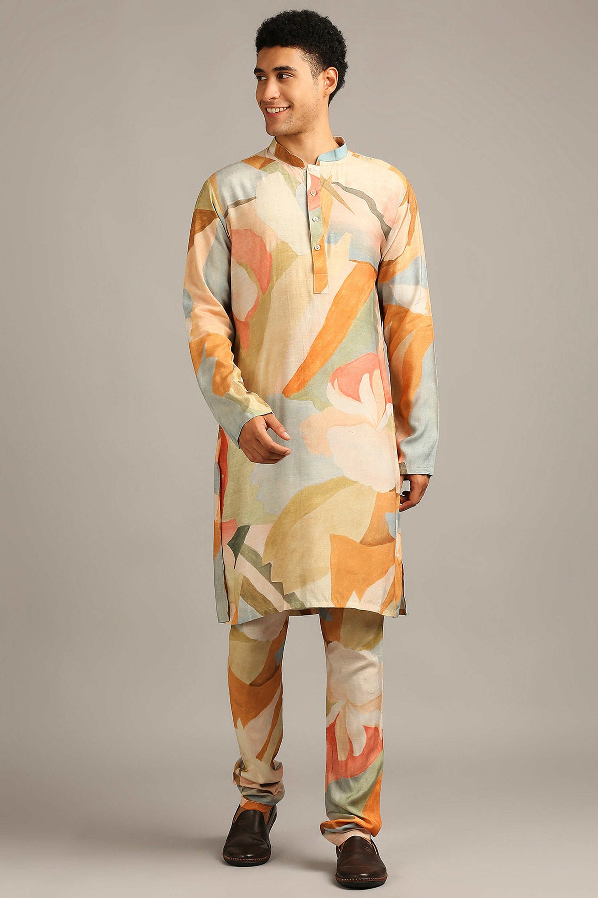 Multi color Conversational printed bundi with kurta set