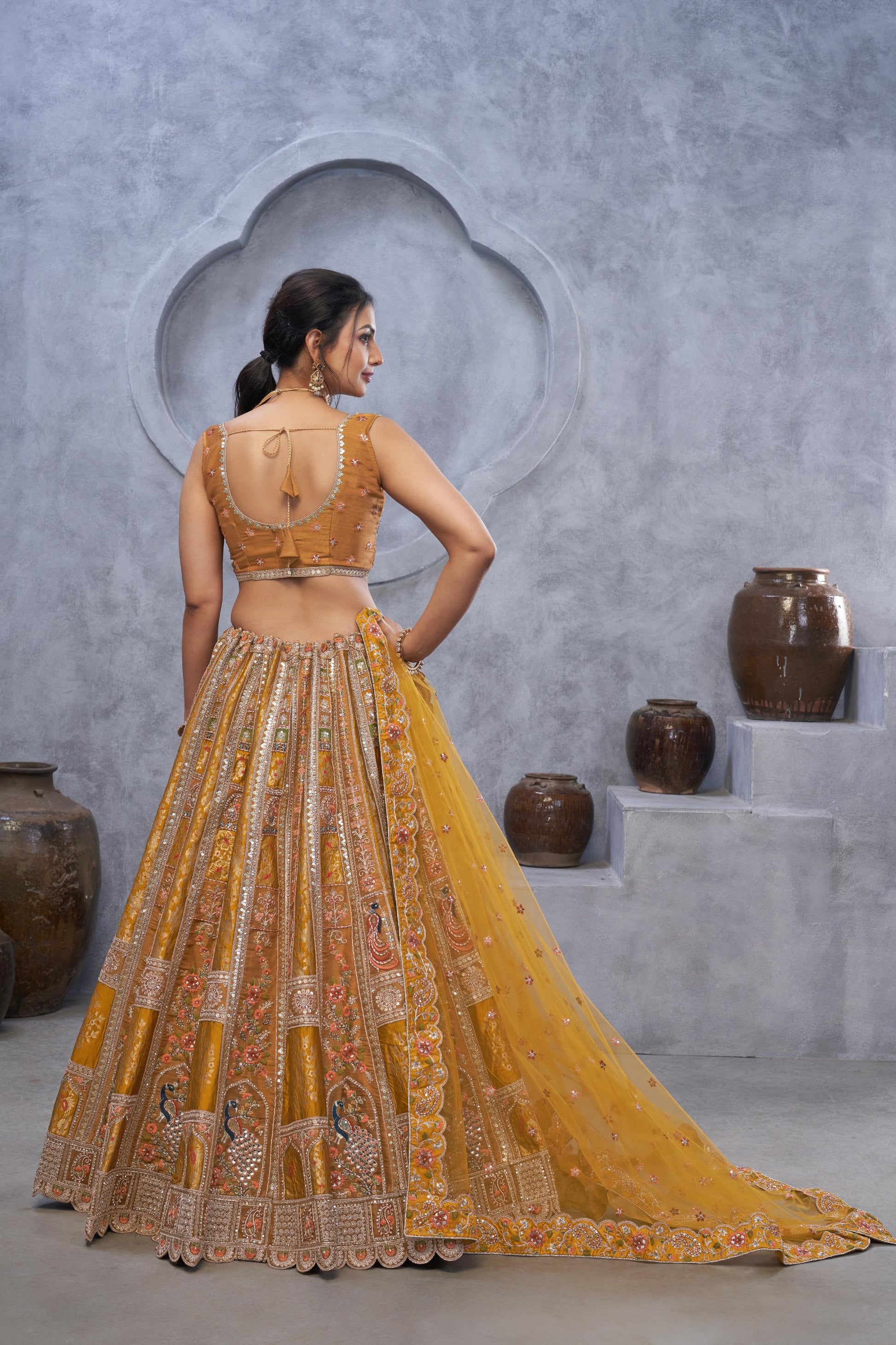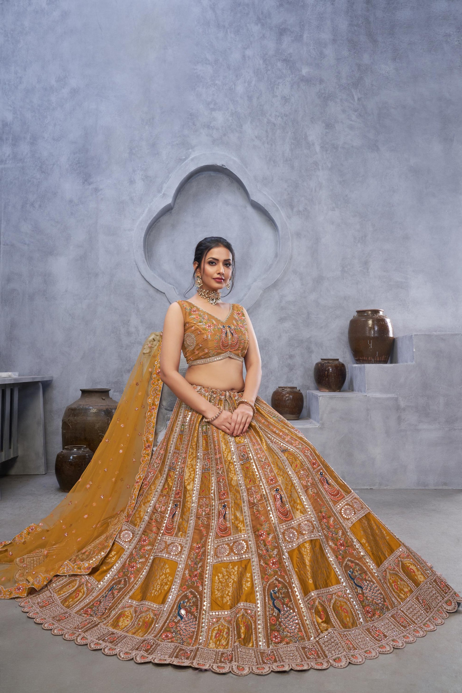 Mustard Banarasi Silk Zari Embroidery Bridal Lehenga