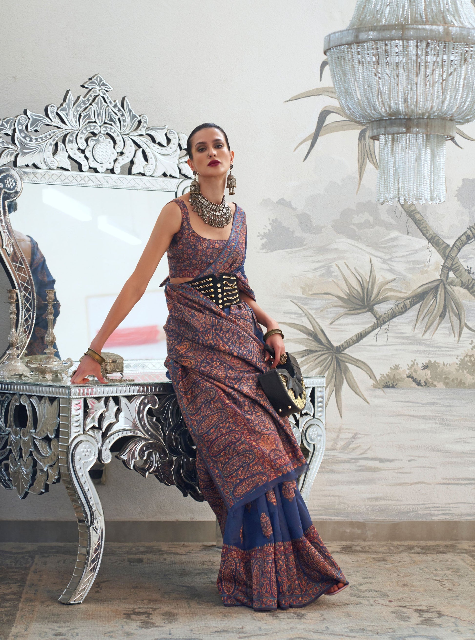 Navy Blue Kqaalib Kashmiri Handloom saree