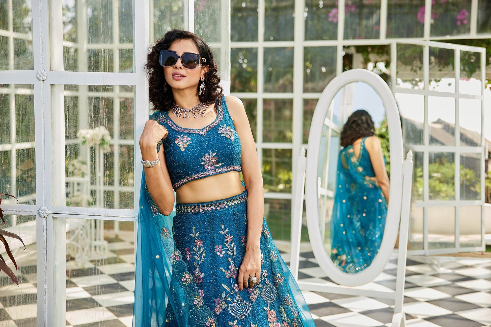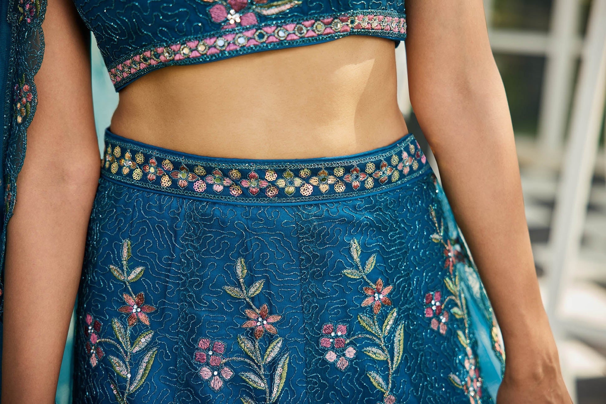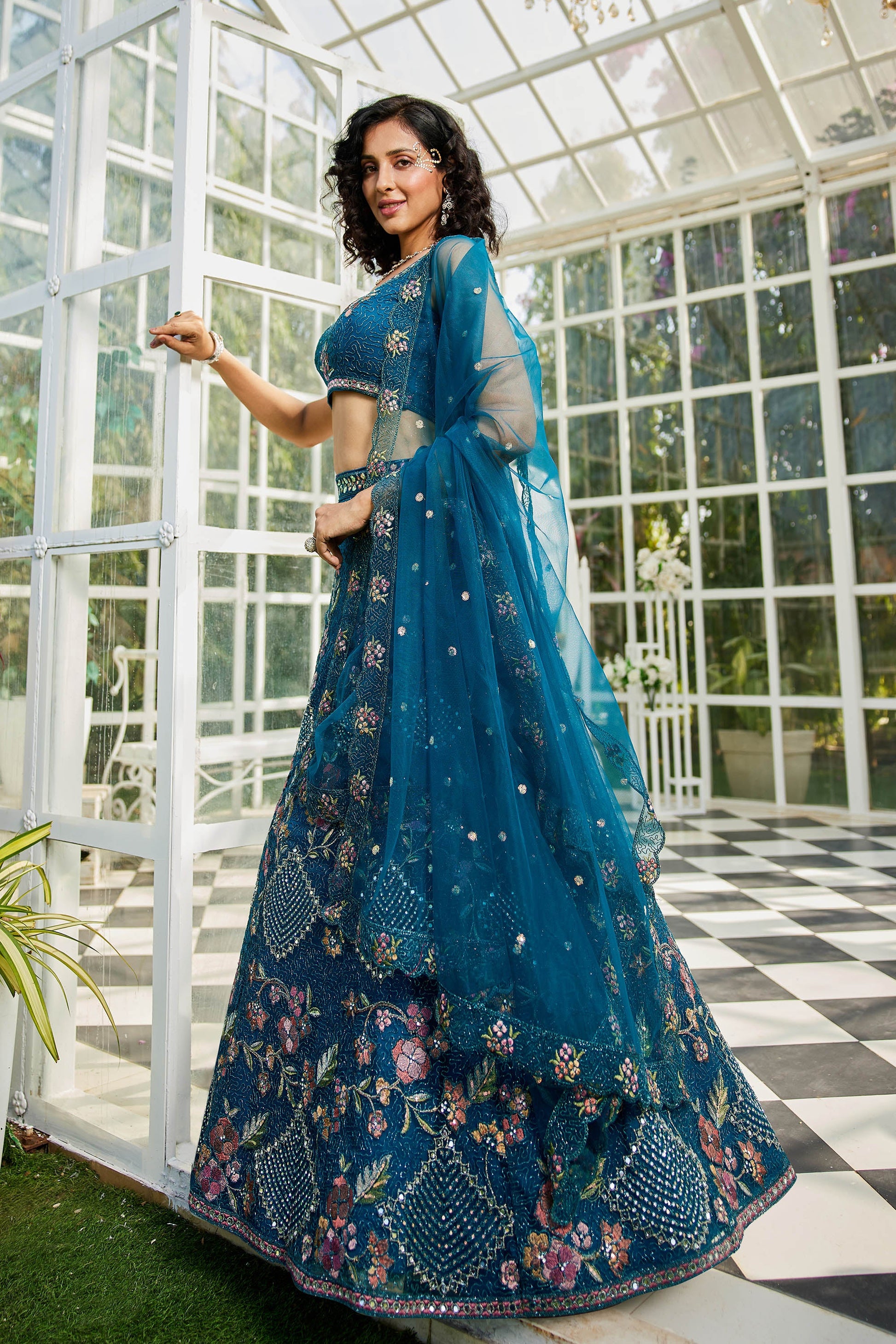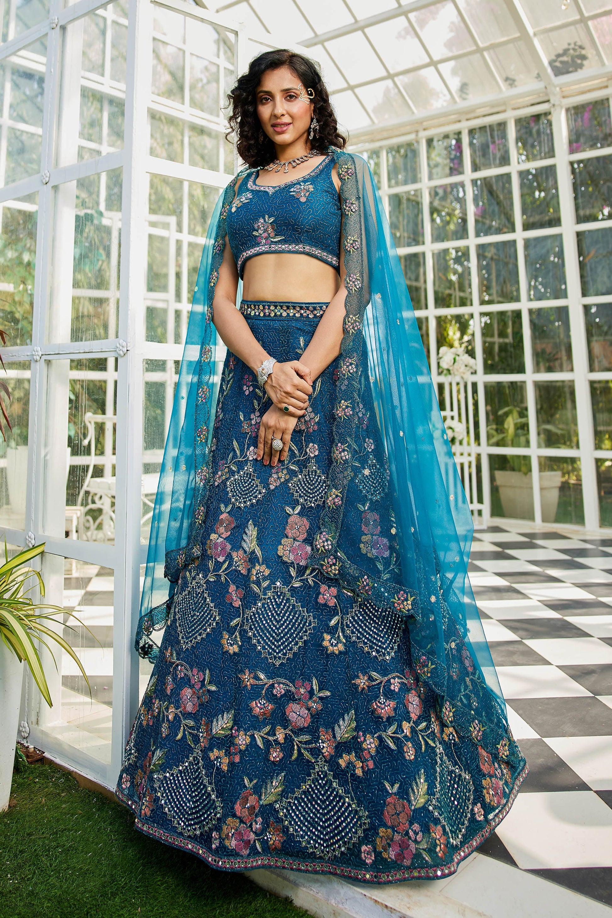 Navy Blue net with Coding & Zarkan embroidery Lehenga choli & Dupatta