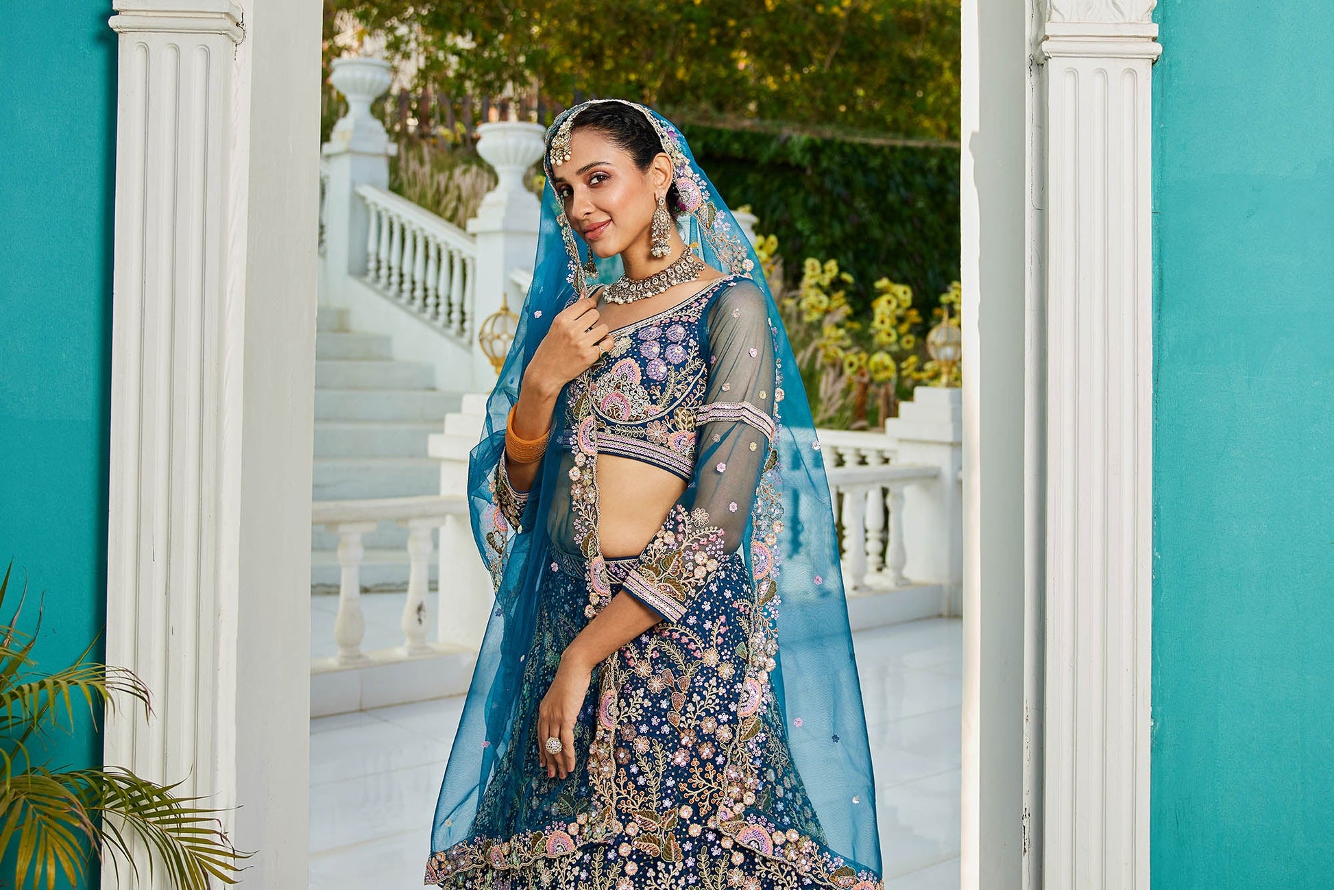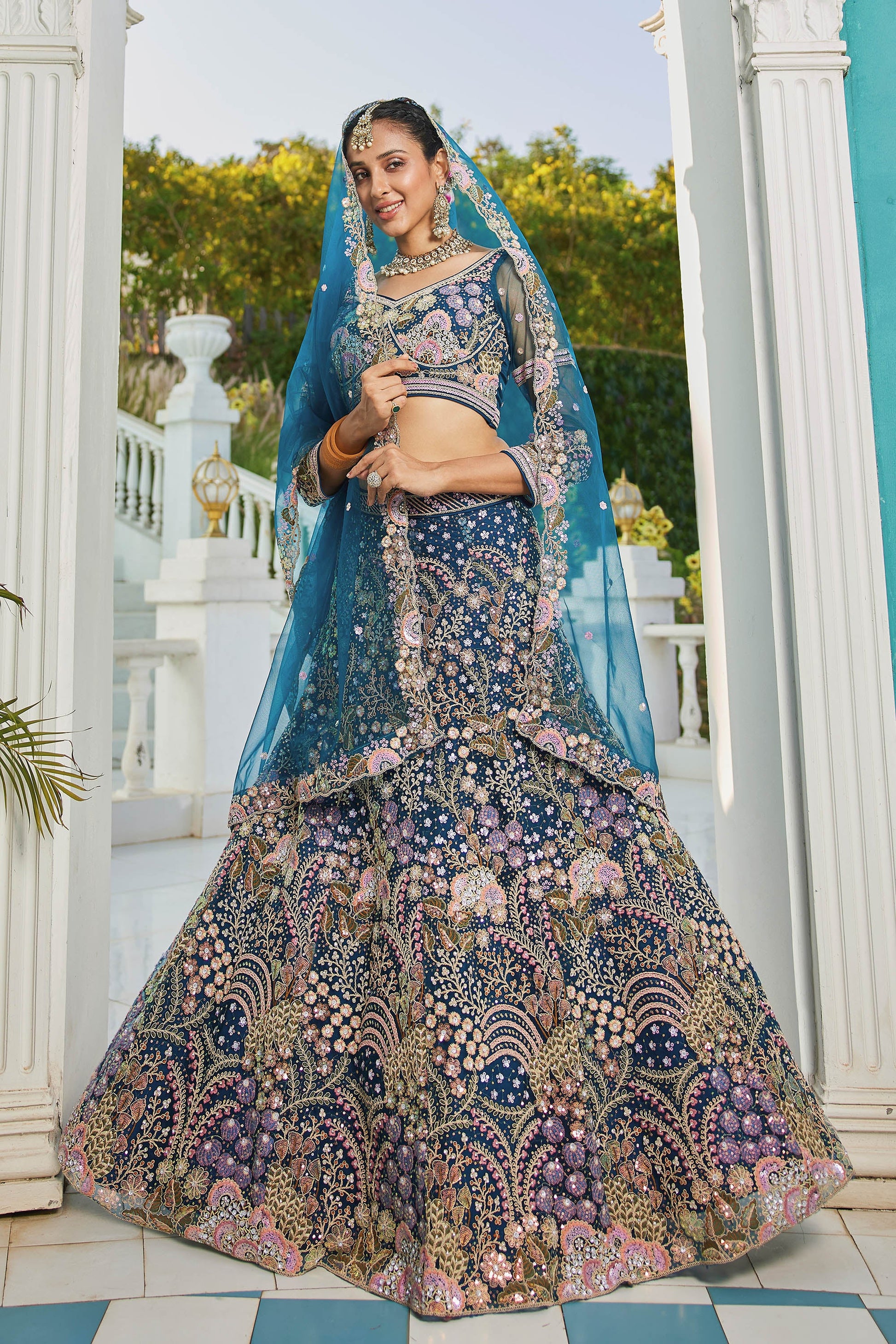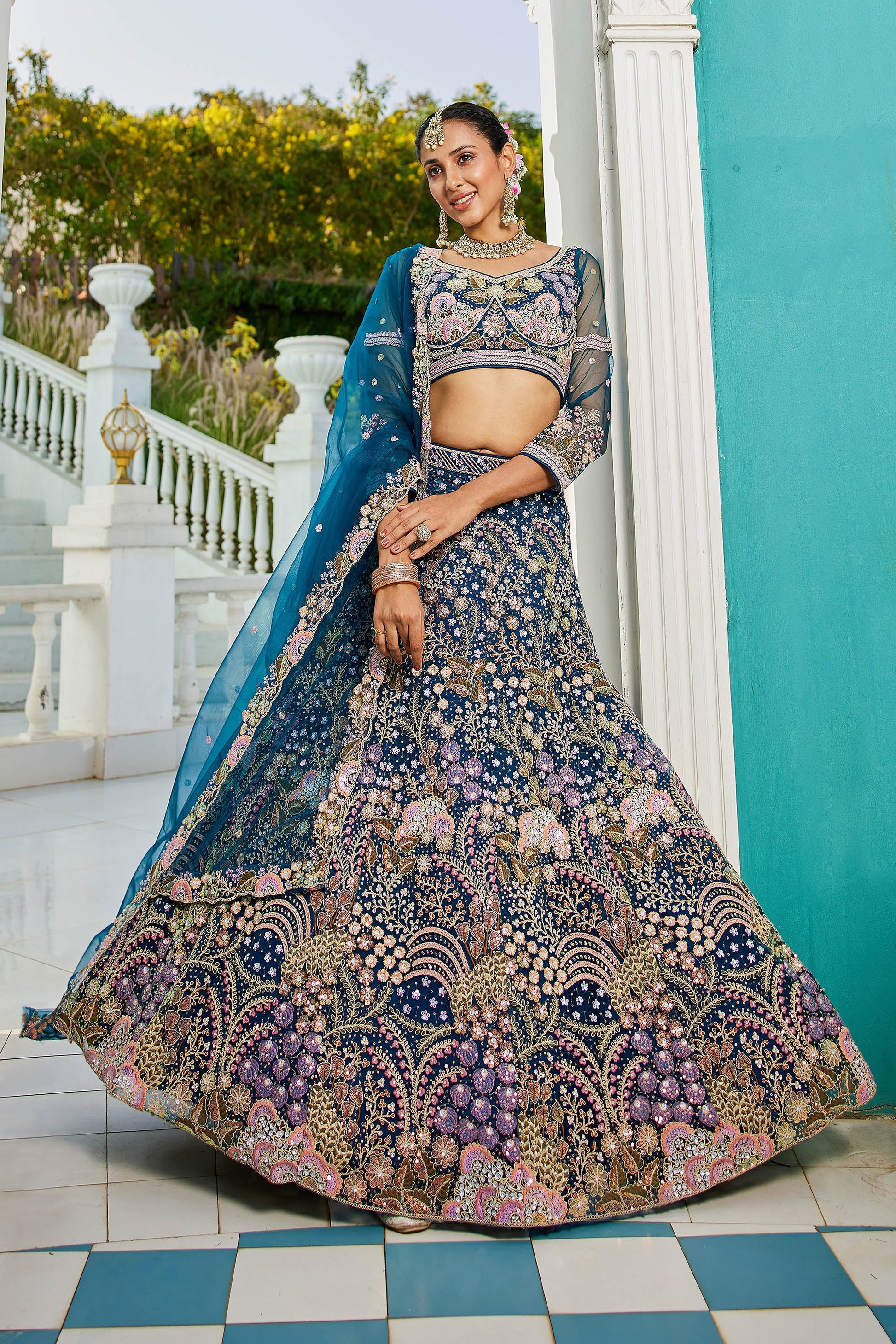 NavyBlue net with Coding & Zarkan embroidery Lehenga choli & Dupatta