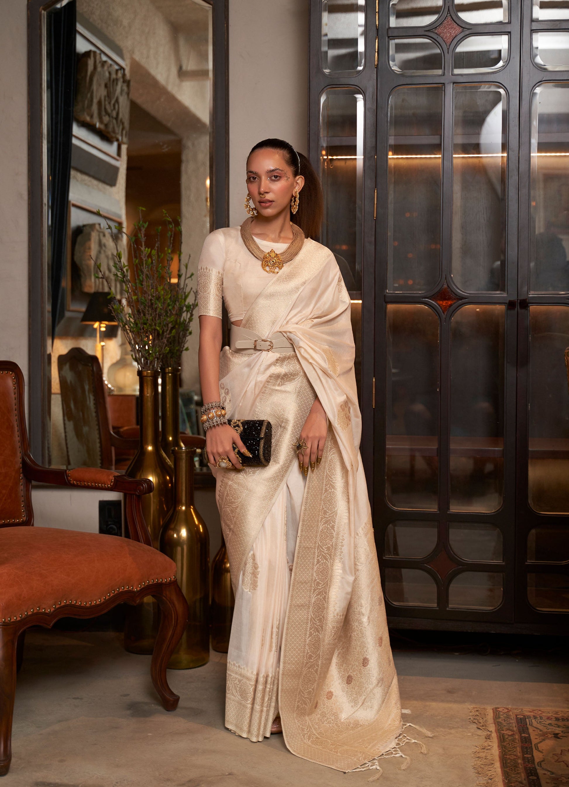Off white Korsa Georgette Pure Khadi Nylon saree