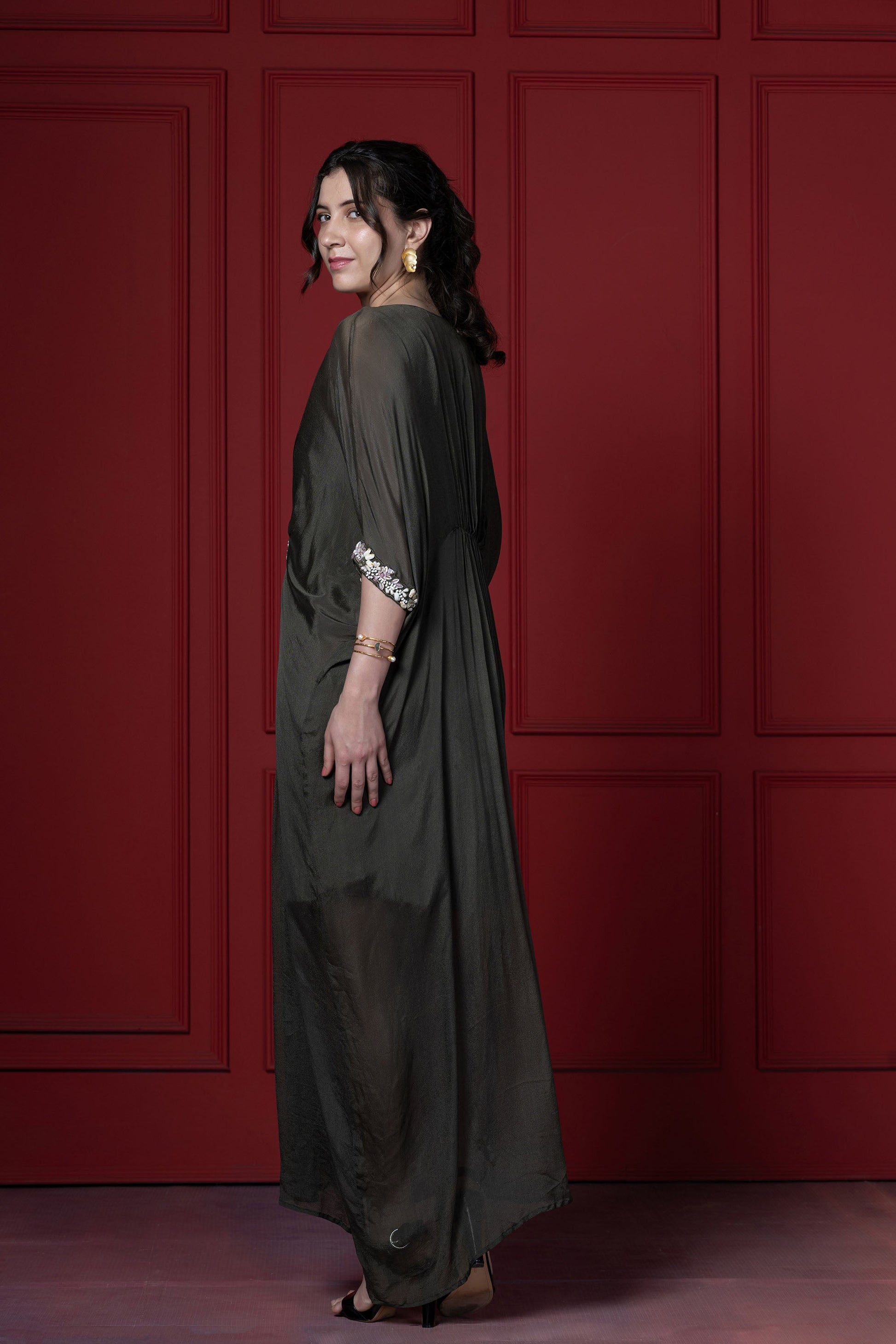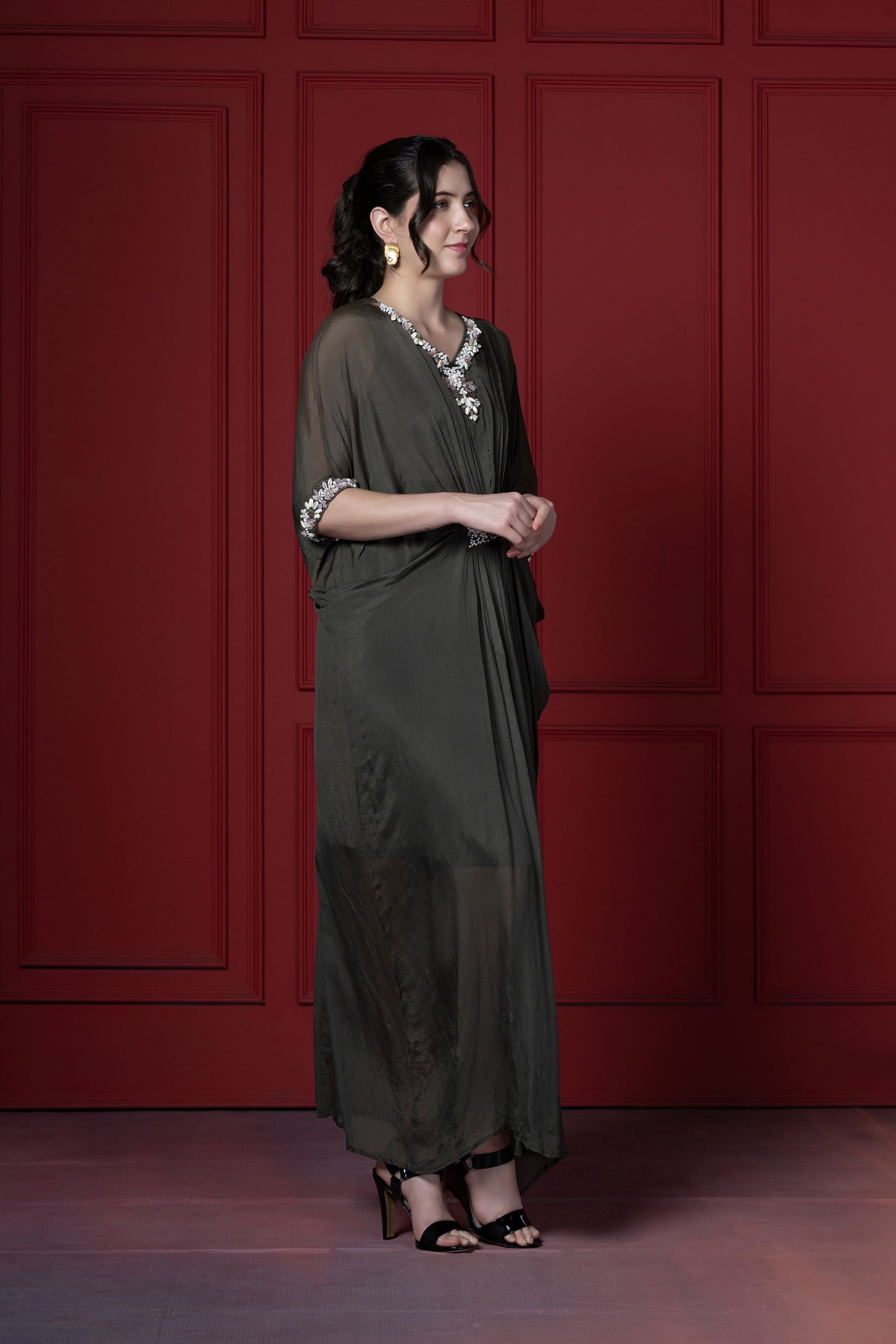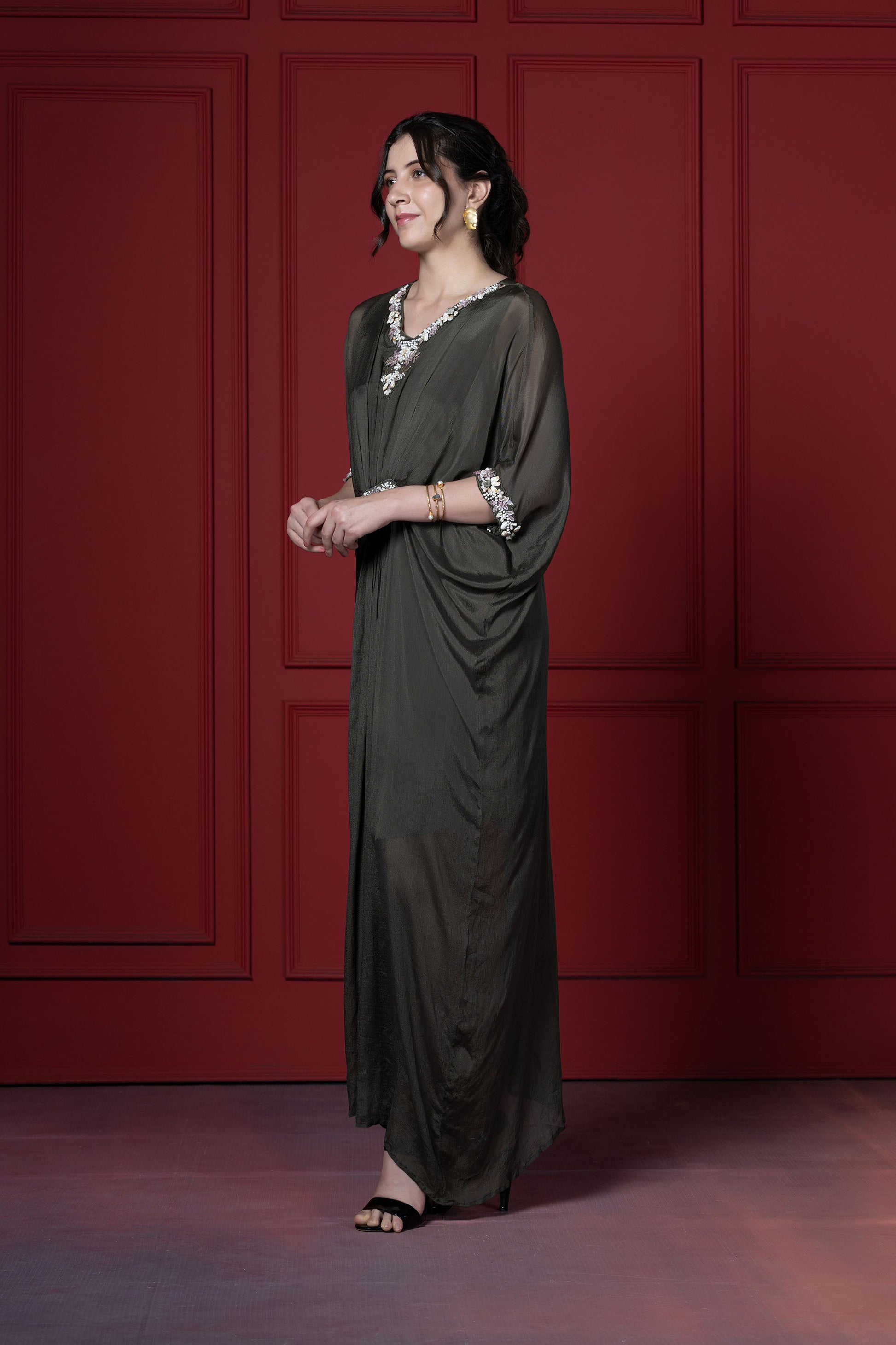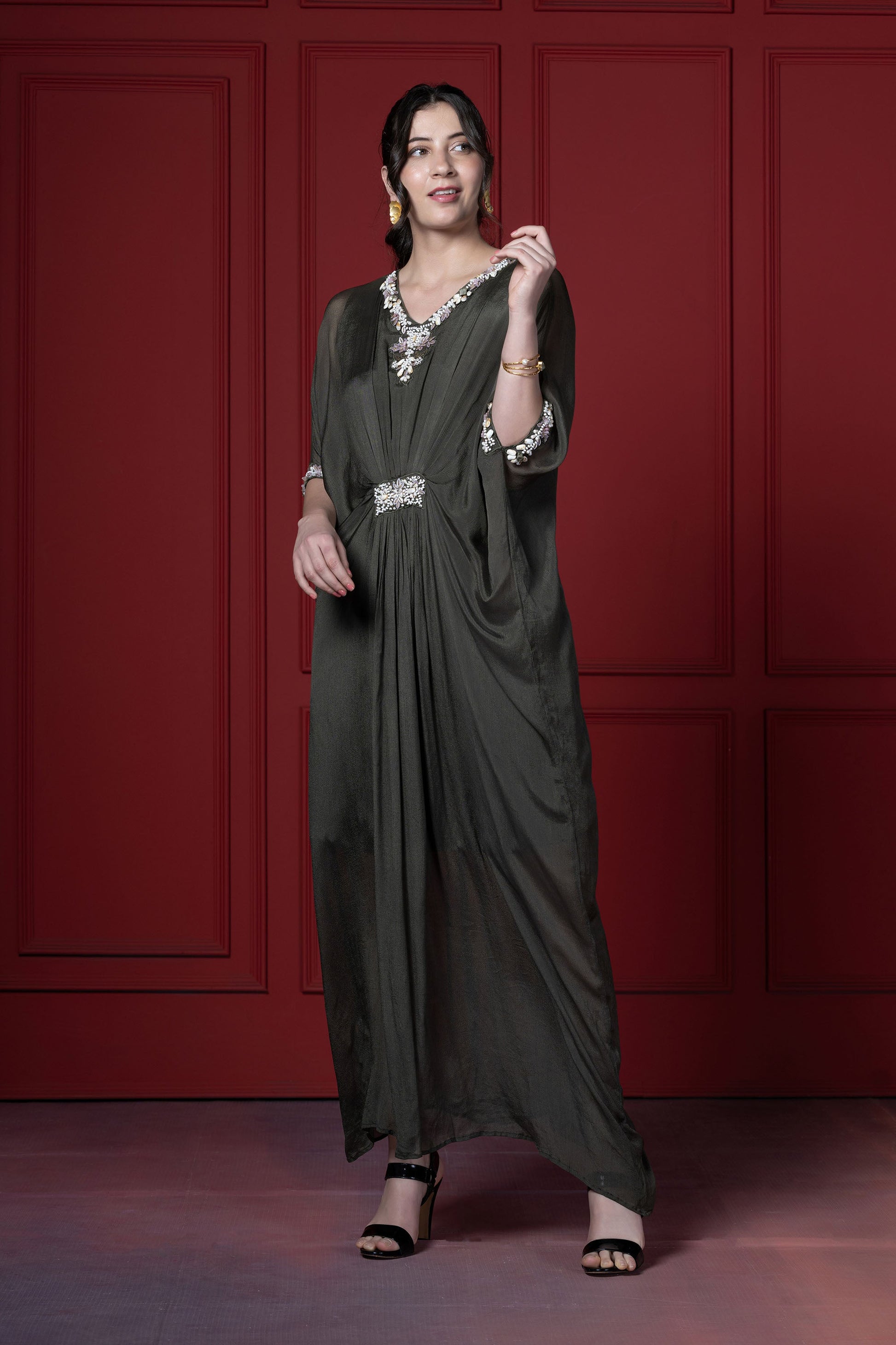 This silhouette is a chic and versatile in its own that combines earthy tone with feminie detailing.Pink floral patches or applique work adds texture & depth to the outfit.