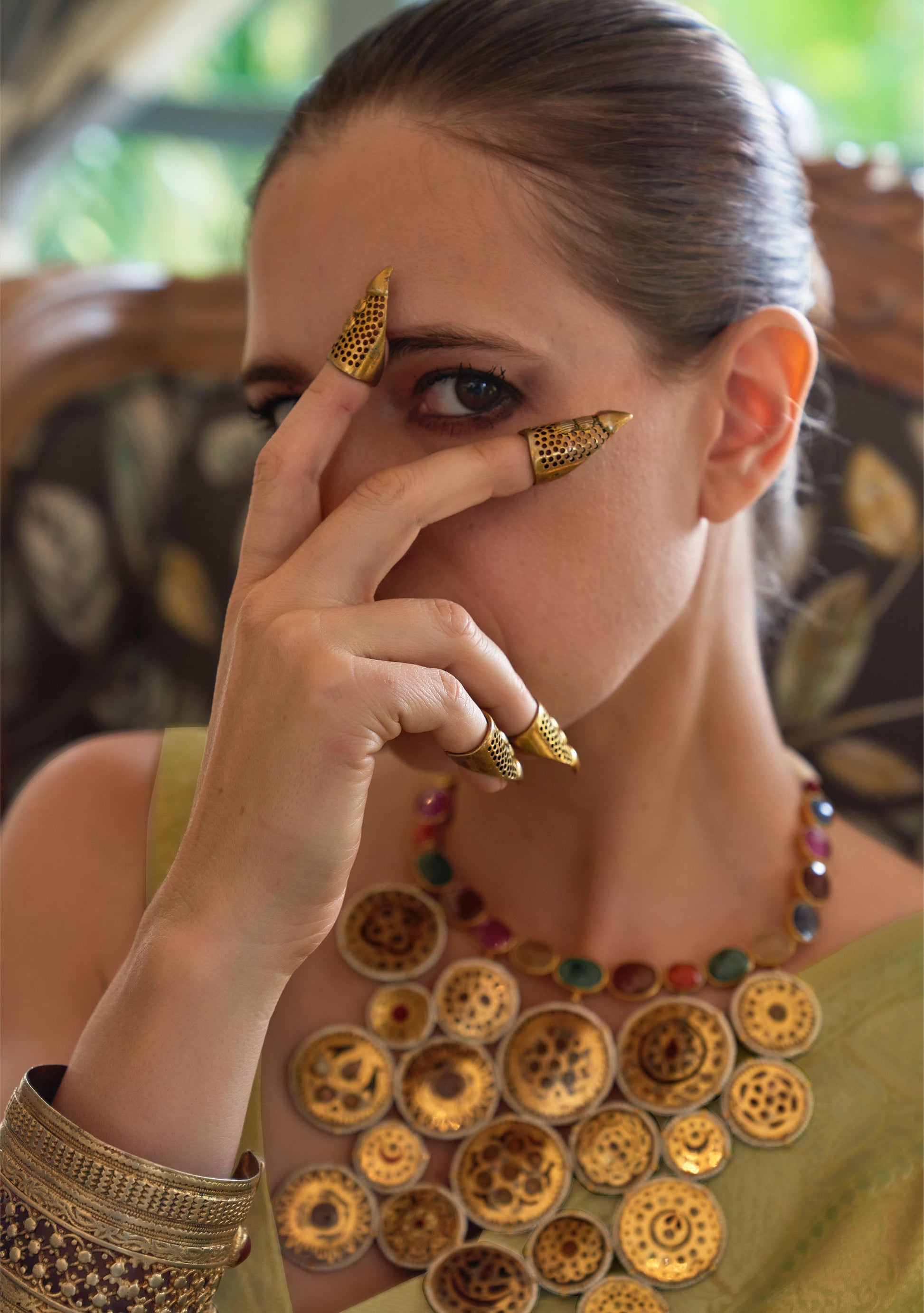 Olive Green Kalki Orchid Satin Tissue Handloom Saree