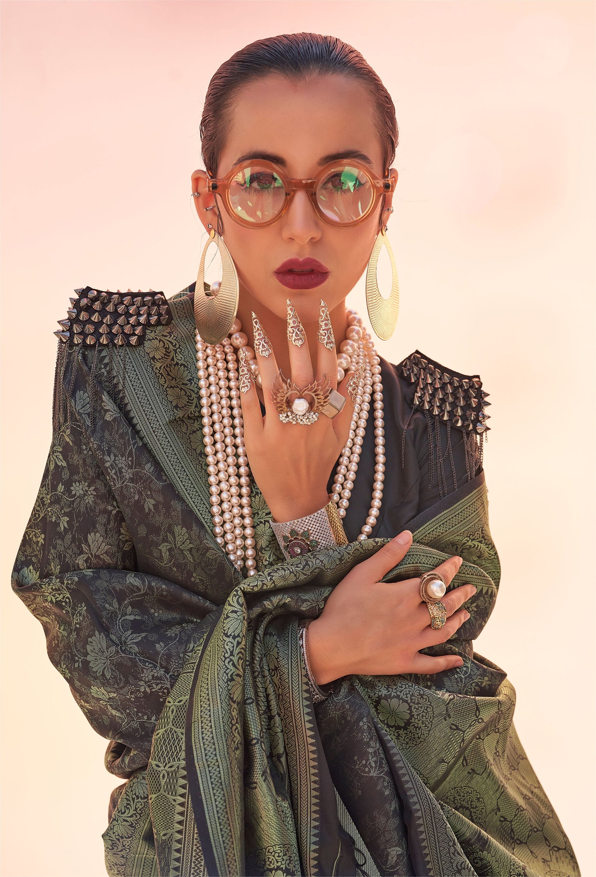 Olive Green Kzainaab Handloom Silk Saree