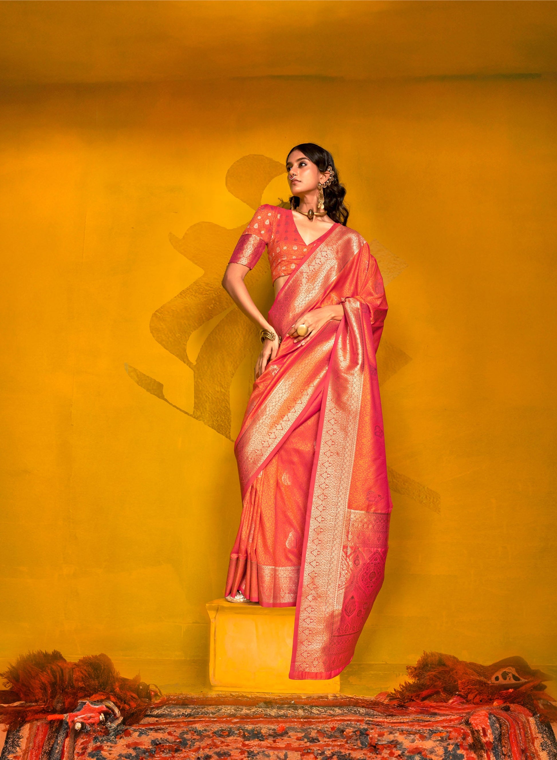 Orange Karnival Two Tone Handloom Weaving Silk Saree