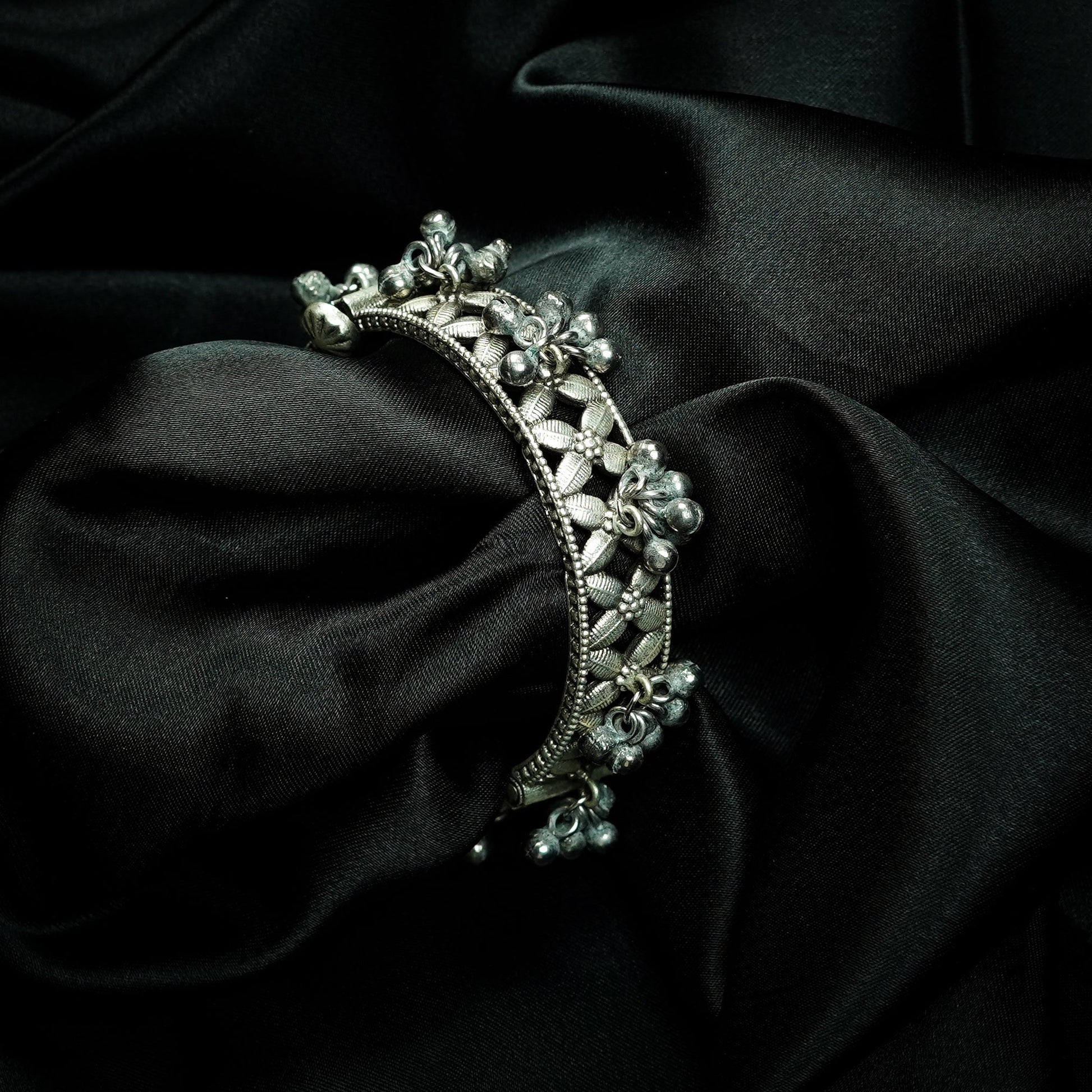 Designed for those who appreciate understated luxury, the Vanshi Quartz Adjustable Chandi Kada is ideal for both everyday wear and special occasions. Its minimalist yet elegant design makes it a perfect accessory to complement any outfit, from traditional to contemporary.