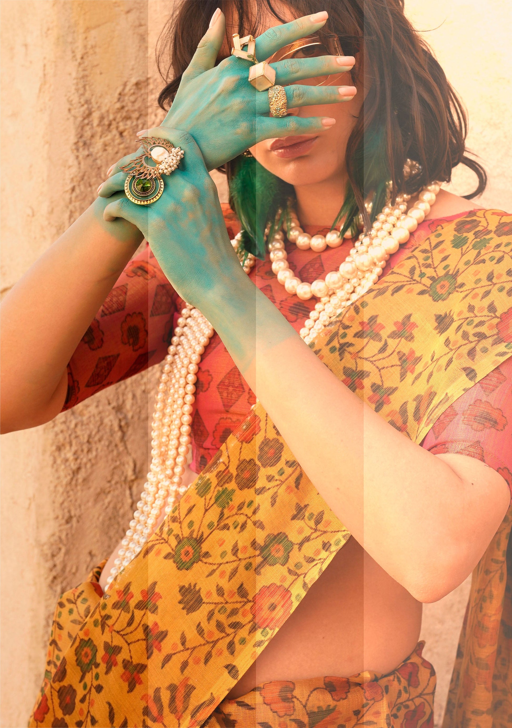 Does your wardrobe need more versatility? Then, check out this. Let your skin feel the refreshing touch as you adorn this superior-quality lightweight Saree to match the overall modest design.