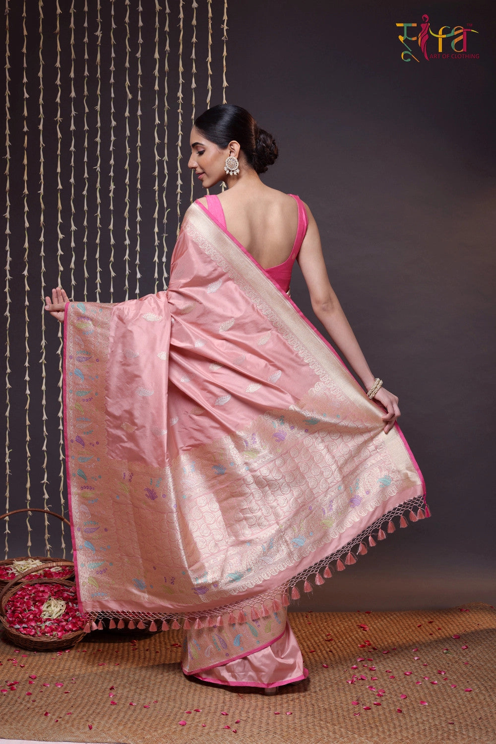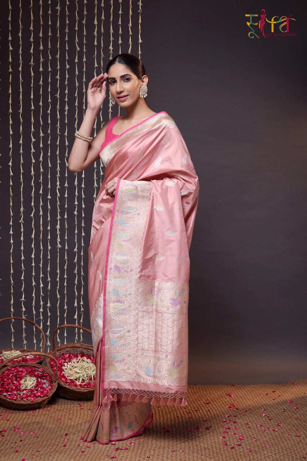Pastel Pink Pure Silk Banarasi Saree With Kadhwa Boder And Pallu