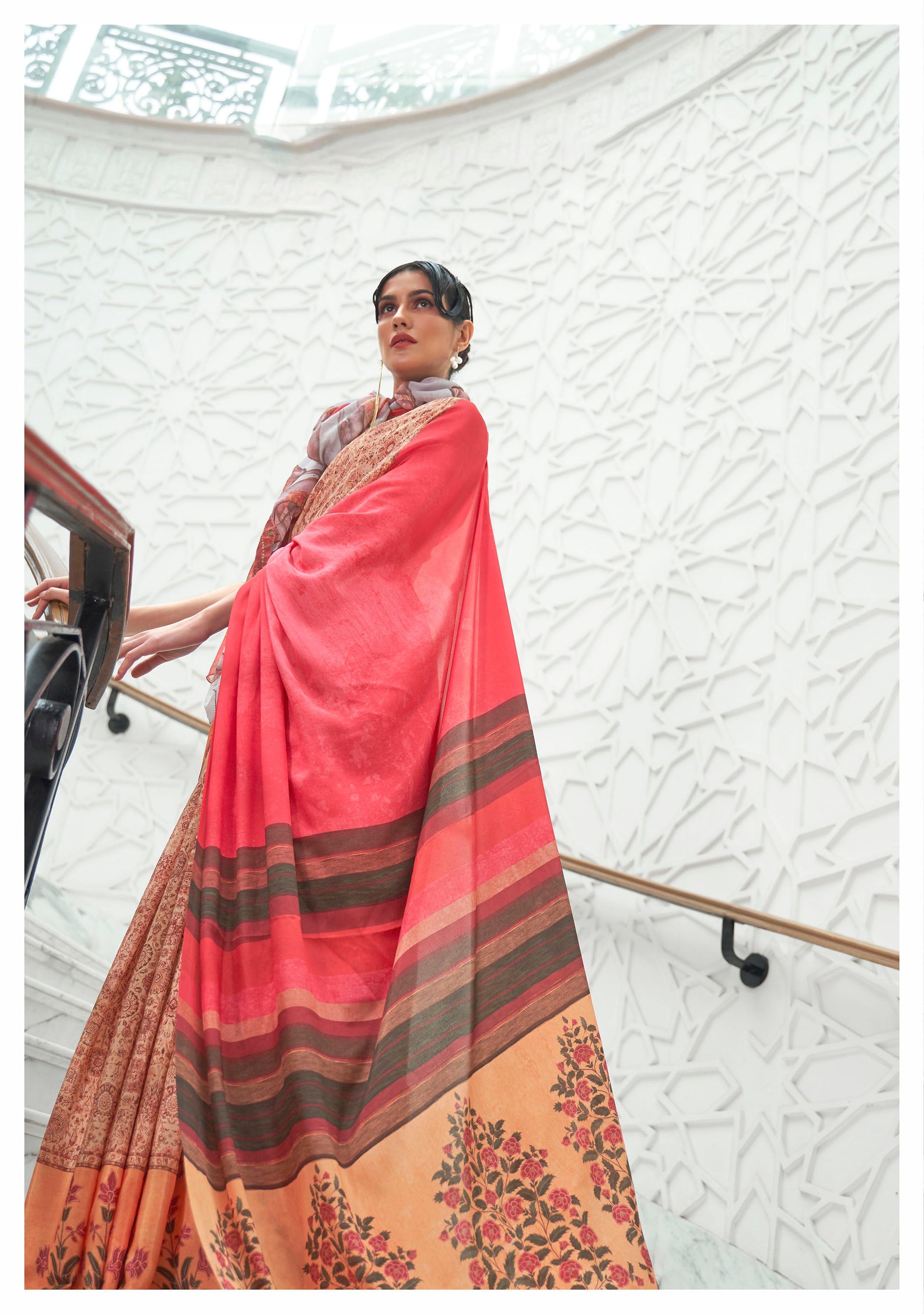 Does your wardrobe need more versatility? Then, check out this. Let your skin feel the refreshing touch as you adorn this superior-quality lightweight Peach Digital Print Crepe Silk Saree to match the overall modest design. If you're yearning to make a fashion statement in your outfit, pick this kalamkari design for any occasion, such as wedding receptions, engagement parties, and sangeets. A wedding Guest would look gorgeous in this Peach Digital Print Crepe Silk Saree. Don't wait. Just go ahead and order.