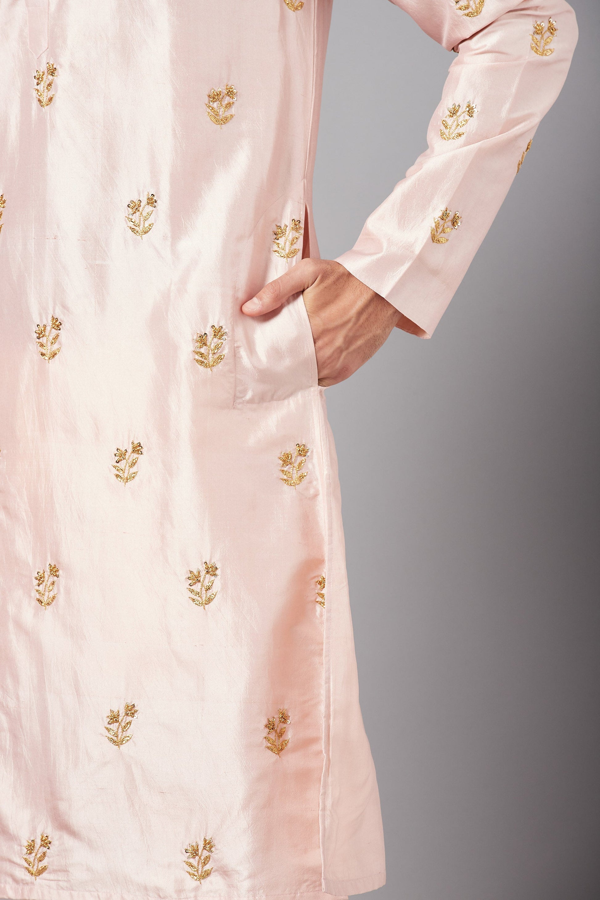 Peach Dupion Silk Hand Embroidered Casual ( only Kurta )