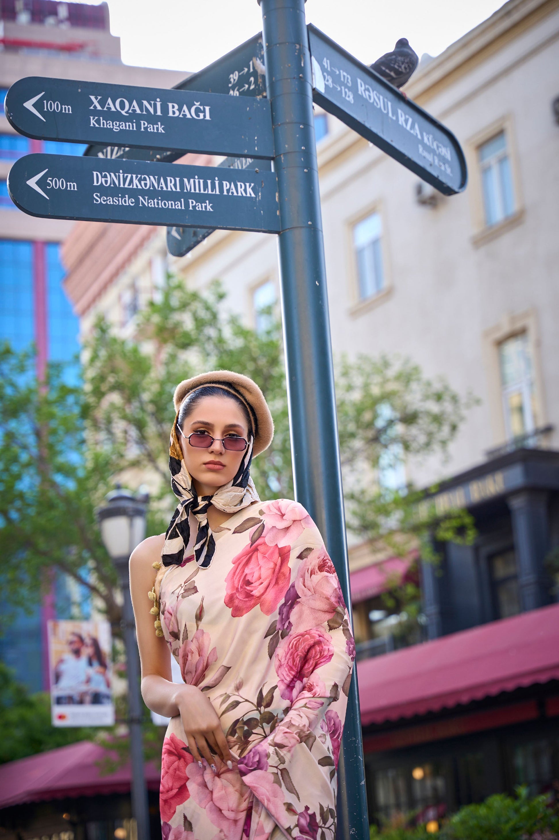 Peach Floral Krayon Pure Silk Crepe Print Saree