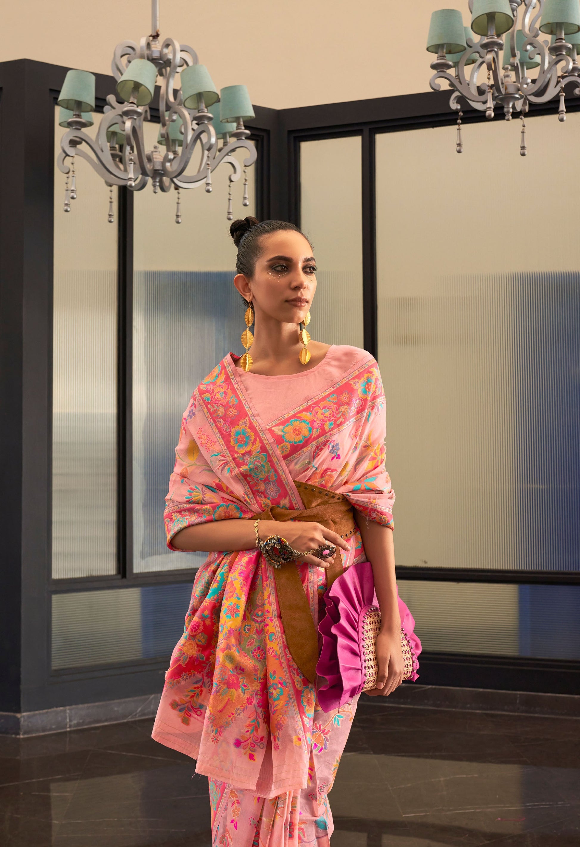 Peach Kabira Kashmiri Modal Handloom Silk Saree