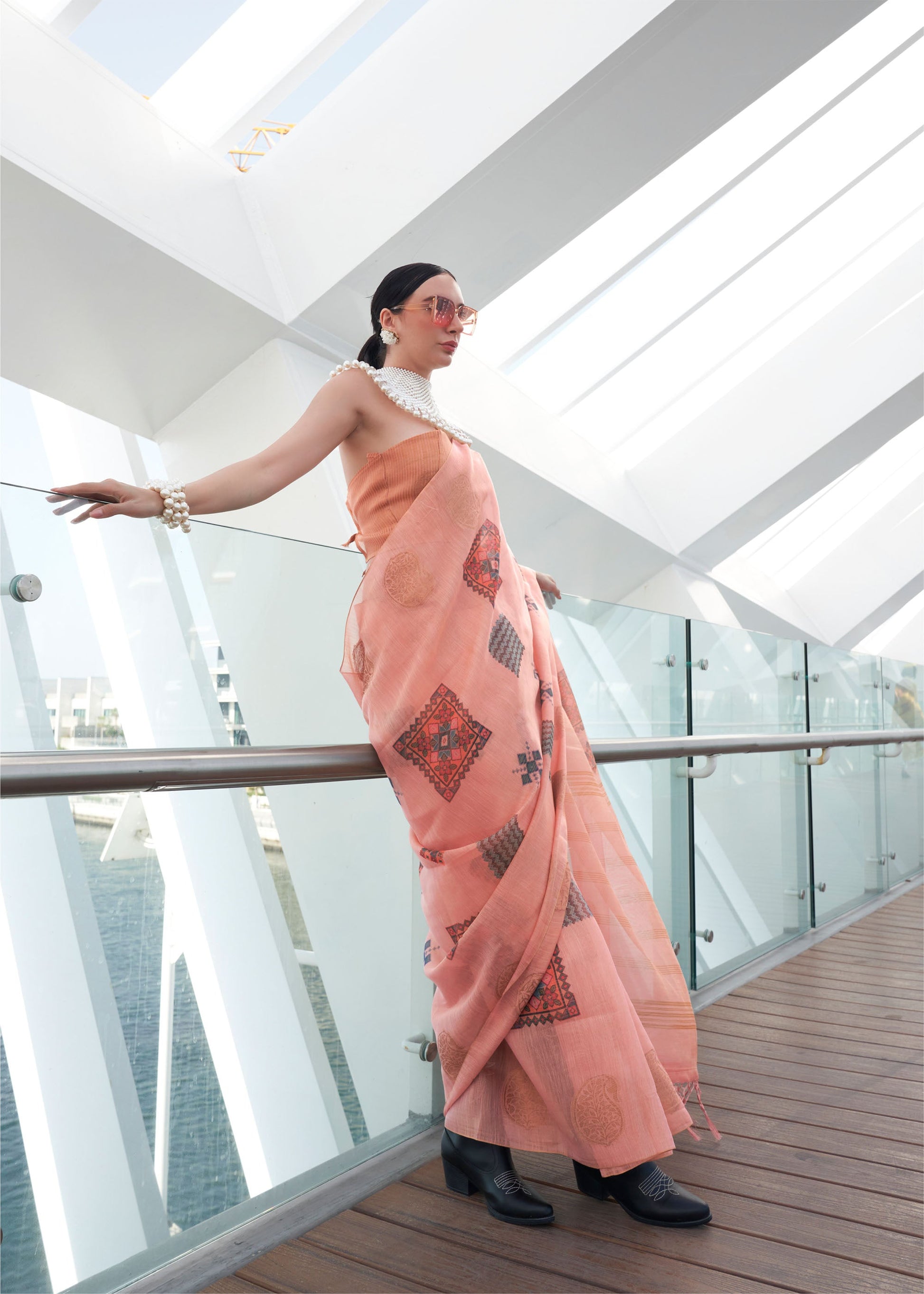 Peach Kroma Zari Tissue handwoven Printed Silk Saree