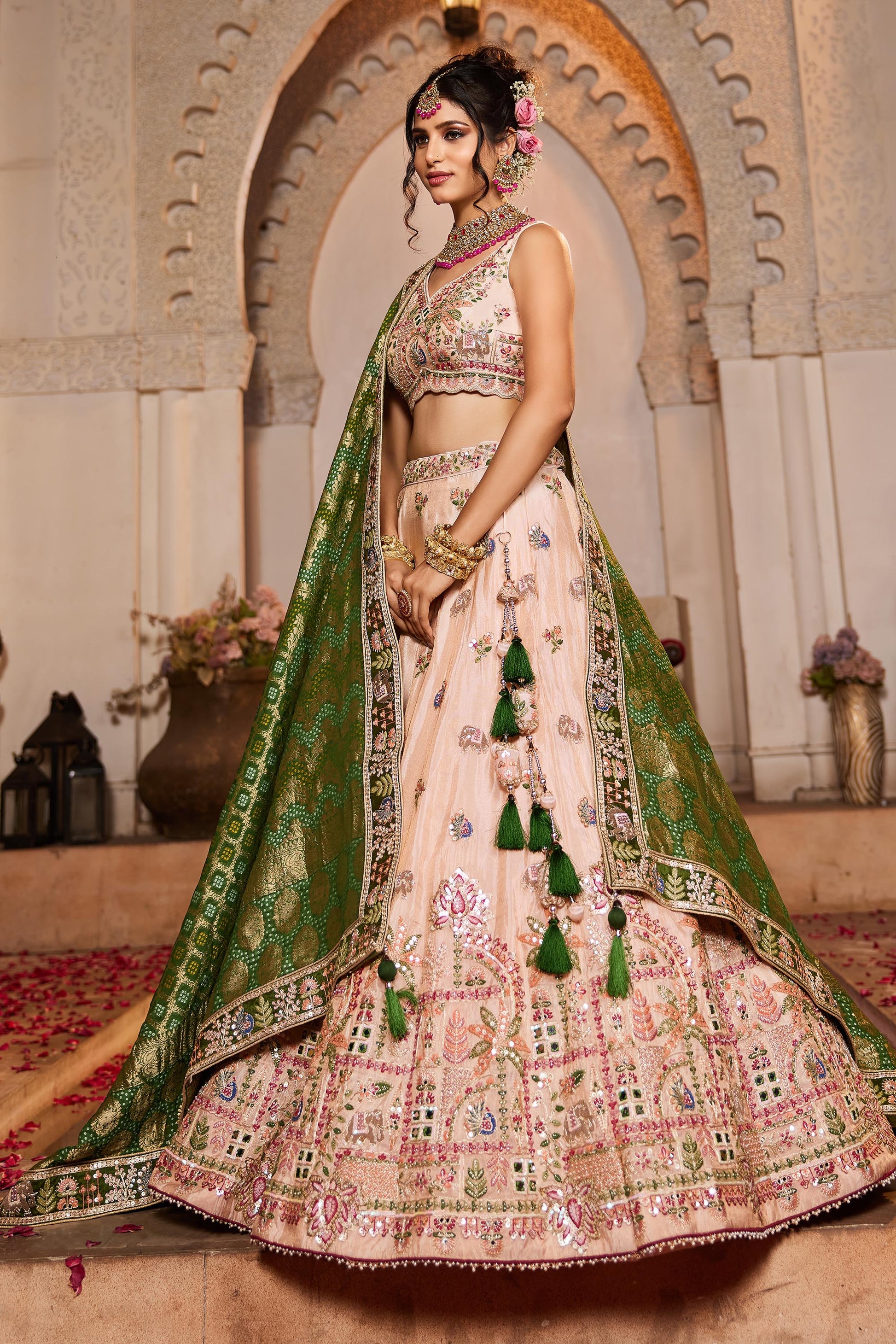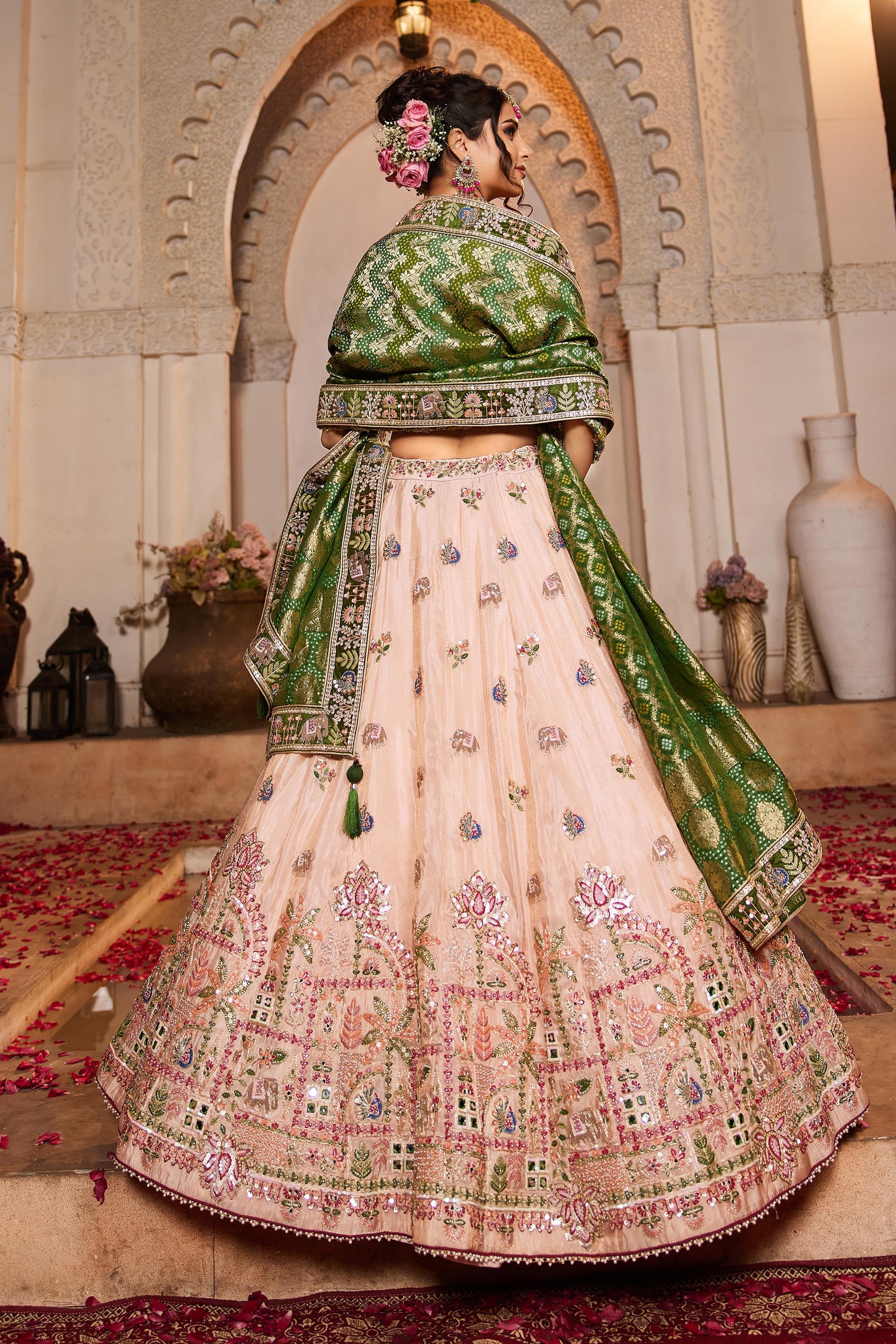 Peach tissue Mirror embroidery Lehenga choli & Dupatta
