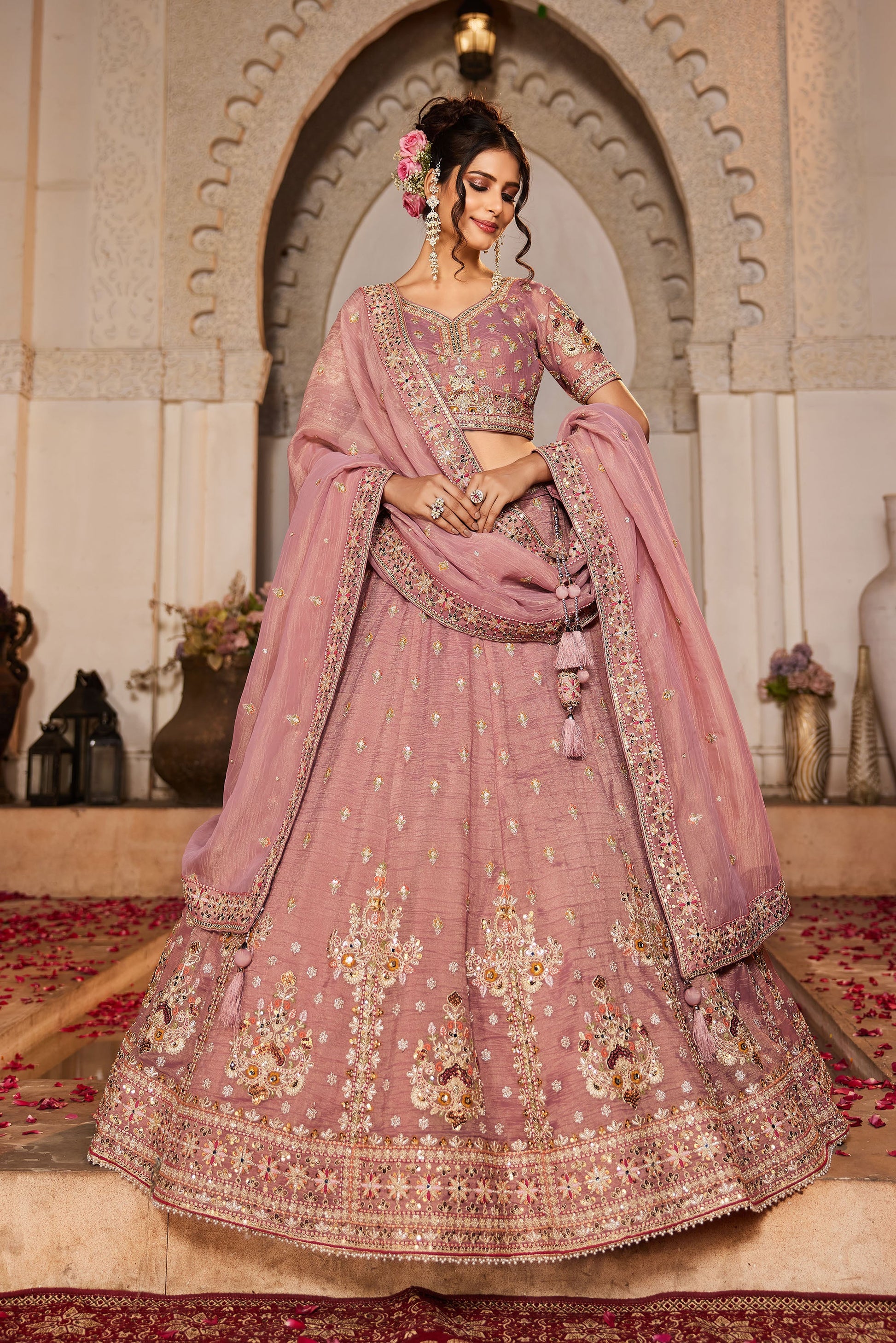 Pink colour Tissue Sequins embroidery Lehenga choli & Dupatta