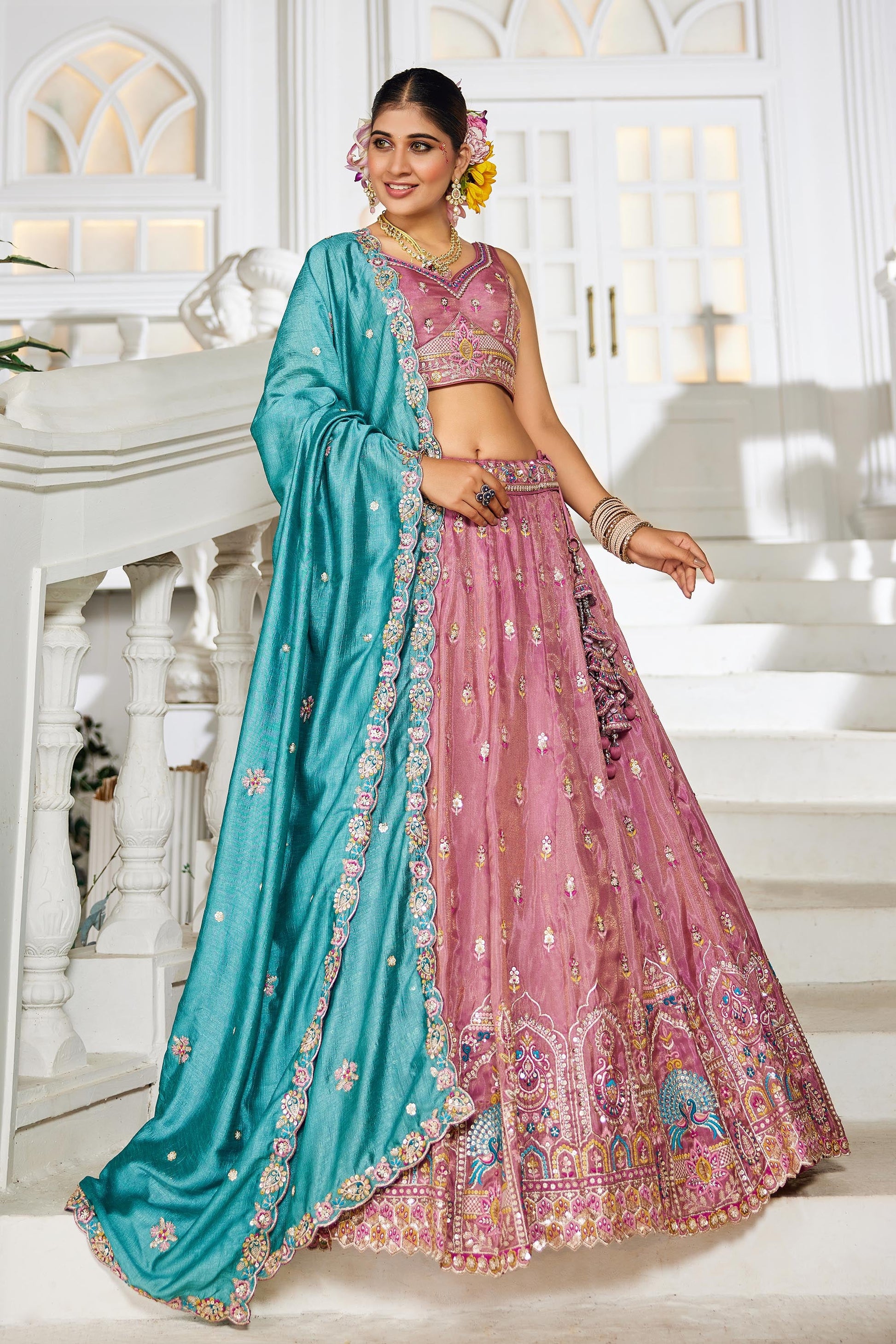 Pink colour Tissue Sequinse embroidery Lehenga choli & Dupatta